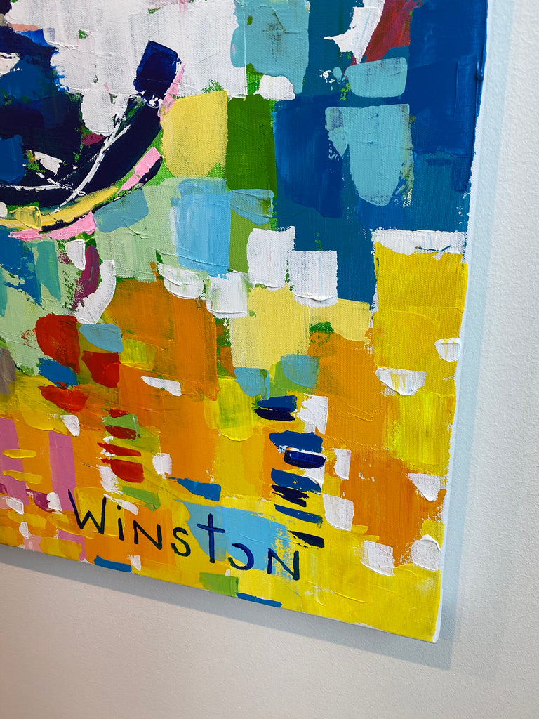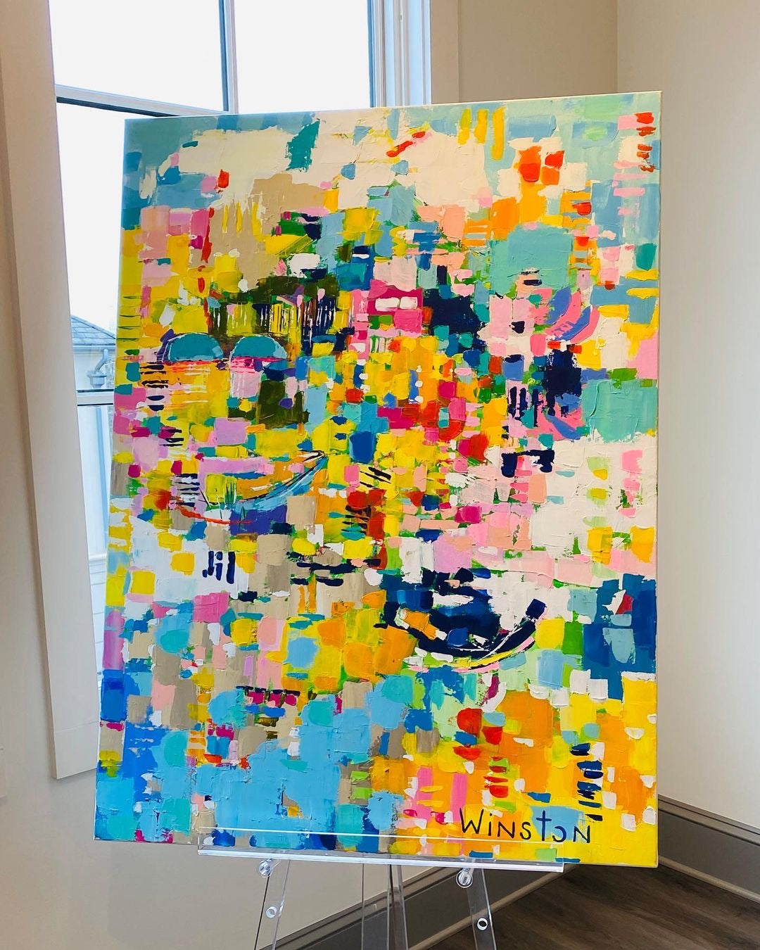 Winston Wiant is originally from Amelia Island, Florida, and full of southern charm. She brings her whimsical and witty delight to each and every painting. Having painted since childhood, she received a Bachelor of Arts degree in Studio Art at Brenau University and has been pursuing her love of art ever since. Her paintings are full of texture, using the palette knife and free brushstrokes to layer the paint, creating one energetic piece after another. She lives in Athens, GA, with her husband and two daughters and paints in her home studio. “Art to me is a form of self-expression. The way I feel that day reflects in my work. My love of bold color and texture is both distinctive and captivating.”