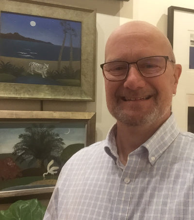 Wilfred Spoon is a painter working in the SC Lowcountry. Born in Charlotte, NC in 1960 he earned his MFA at Parsons School of design in New York in 1987. His chosen media is oil painting. His paintings explore traditional landscapes, still lifes, as well as interiors. His still lifes and interiors search the mystery of the everyday while maintaining an emphasis on structure. His landscapes are a celebration of nature and fantasy. Sometimes dark but always optimistic. He strives to express what the artist knows rather than what he sees, and so the facts of physical reality are largely sifted through the mind and personality of the painter. His paintings demonstrate his love for the naive as well as his art education. This combination infuses his work with a surprising clarity in an unexpected world.