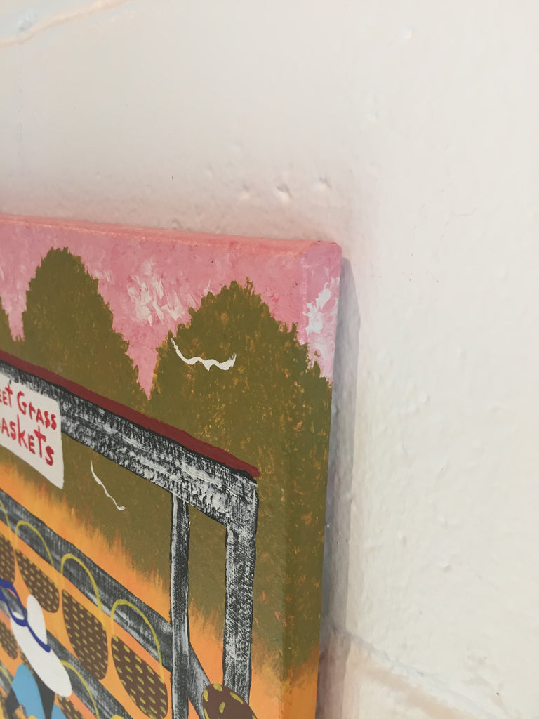 Squeakie is a self-taught artist from the rural Lowcountry whose nostalgic paintings portray a simpler way of life in Coastal South Carolina. He draws his inspiration from memories of childhood where he often worked in tobacco and cotton fields. He talks about this time in his life as "the work was hard, but life was slower, more simple- not so many distractions and bills to pay." He went on to work in factories and grocery stores until he became a house painter for nearly 25 years. Like many self-taught artists, Squeakie did not start creatively painting until later in his life. He was encouraged to do so by his Uncle Henry "Squirrel" Stone, who was a folk artist himself. One of Squirrel's clients asked for a commissioned painting of a church. Squirrel passed this commission on to Squeakie. Since that first painting, Squeakie has a resolute sense of purpose in his work. In 2007 he became a full-time artist, and now his "naive, down-home pictures" have been bought by collectors across the United States, and abroad. He says he paints more now than when he painted houses as his paintings tend to get snapped up quickly.