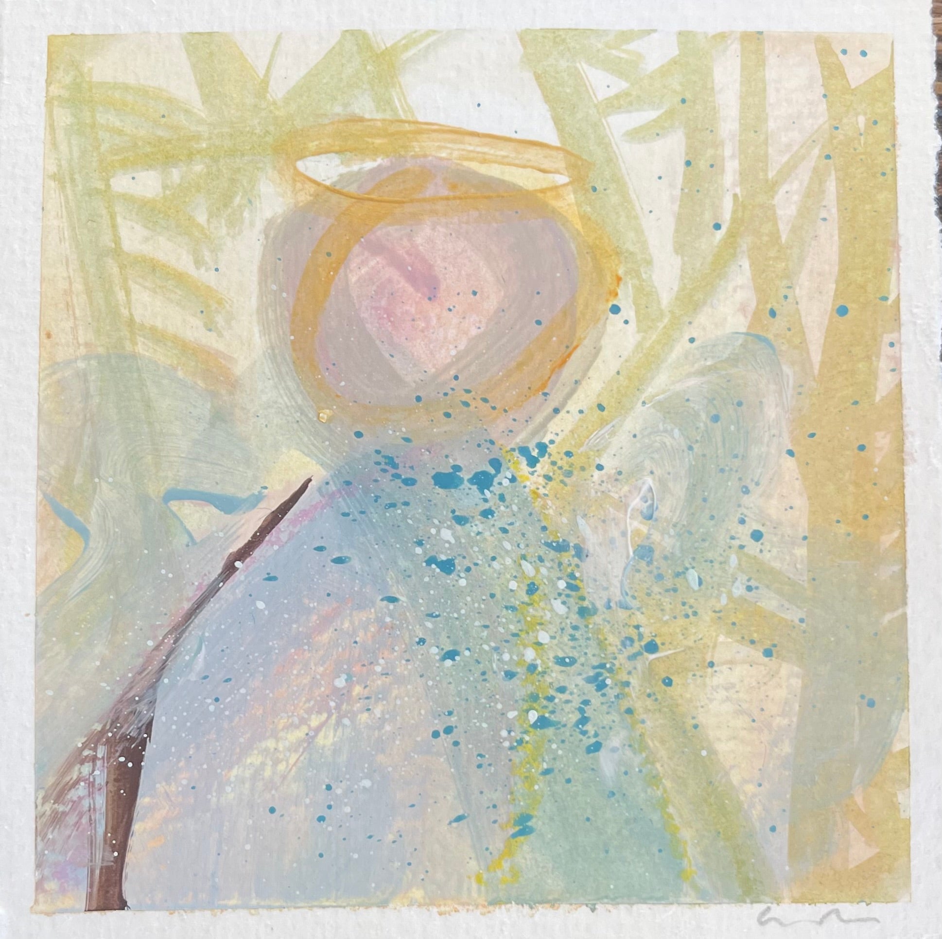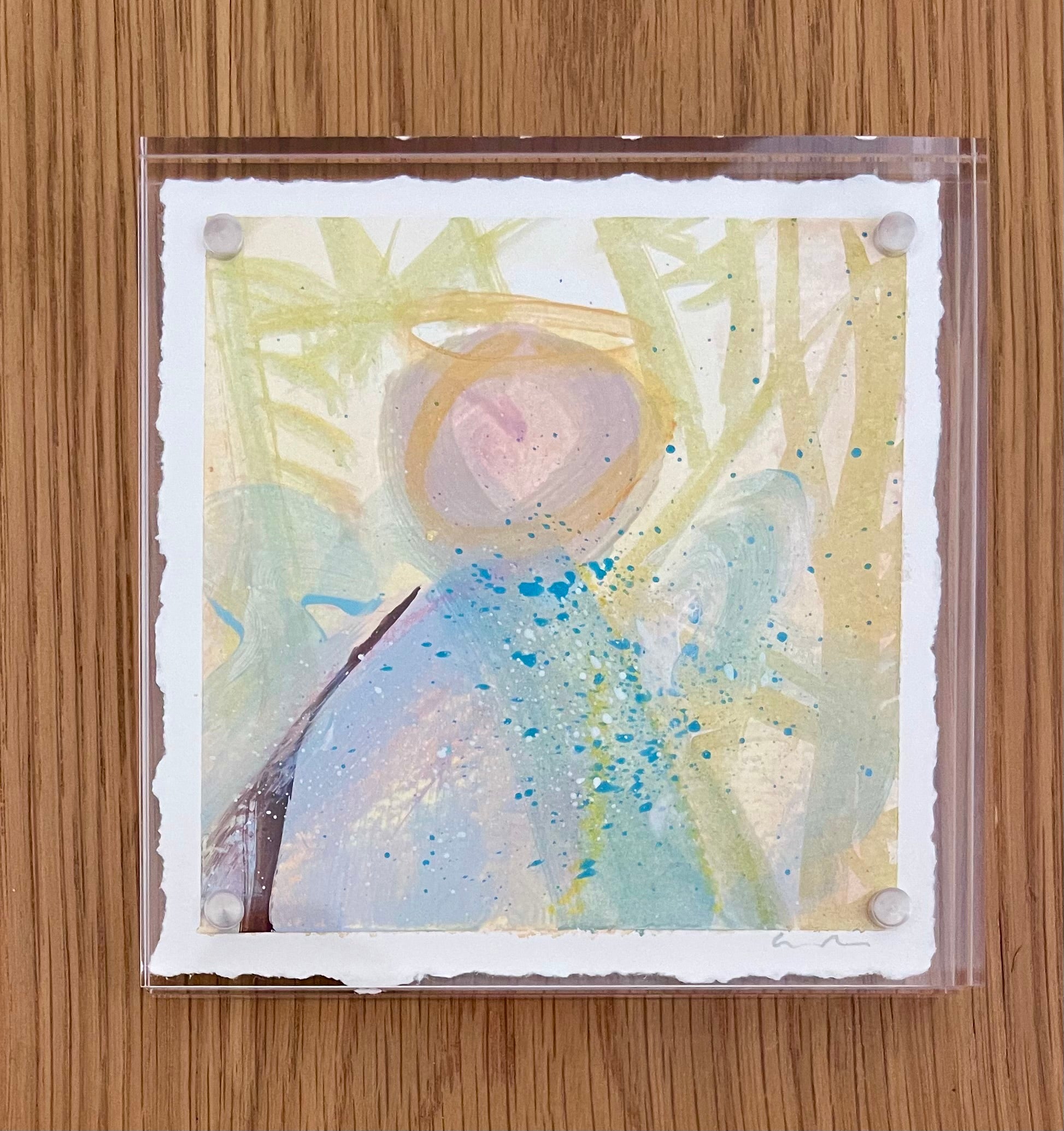 mixed media and watercolor on paper, in acrylic frame