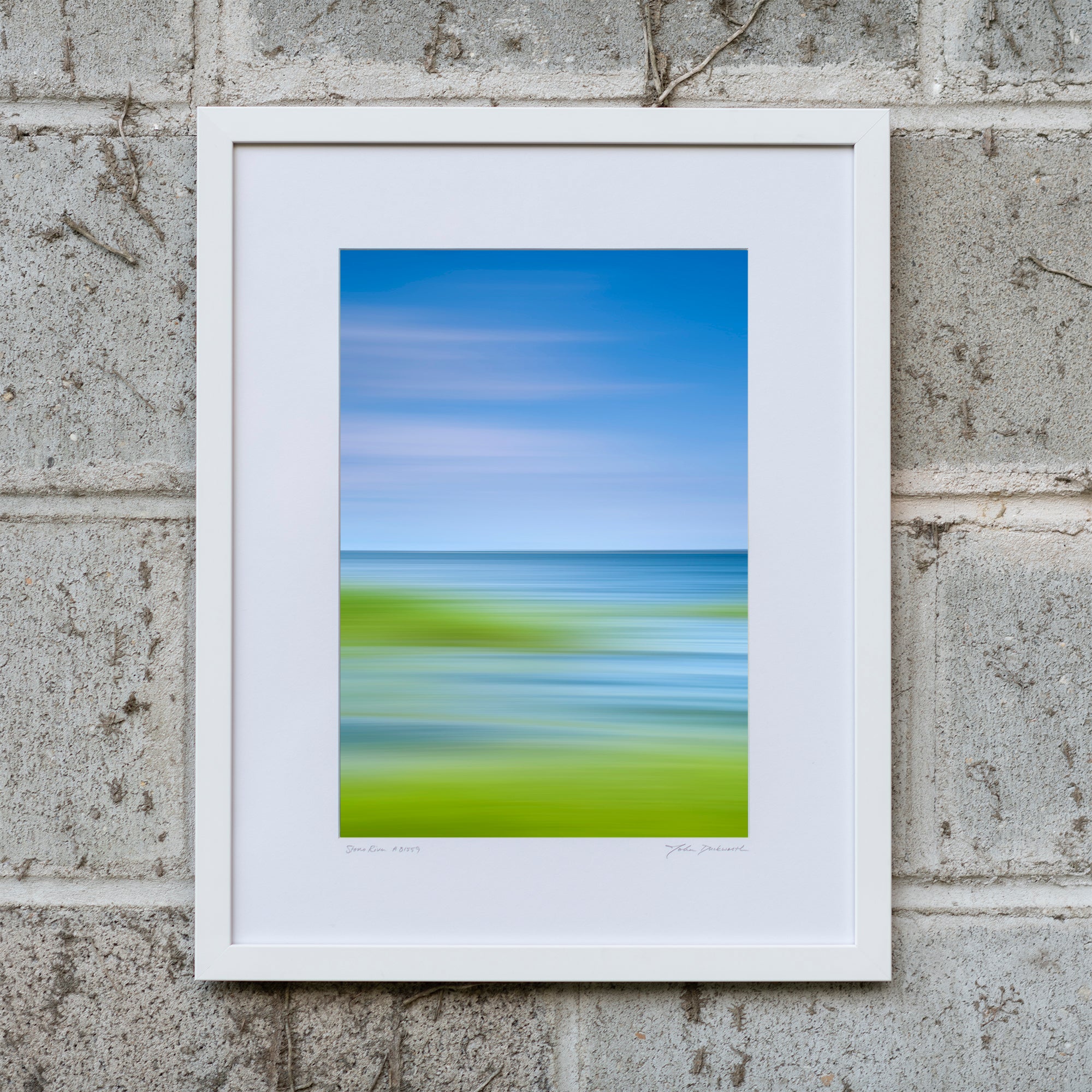abstract landscape photograph on foam core, matted and framed in white