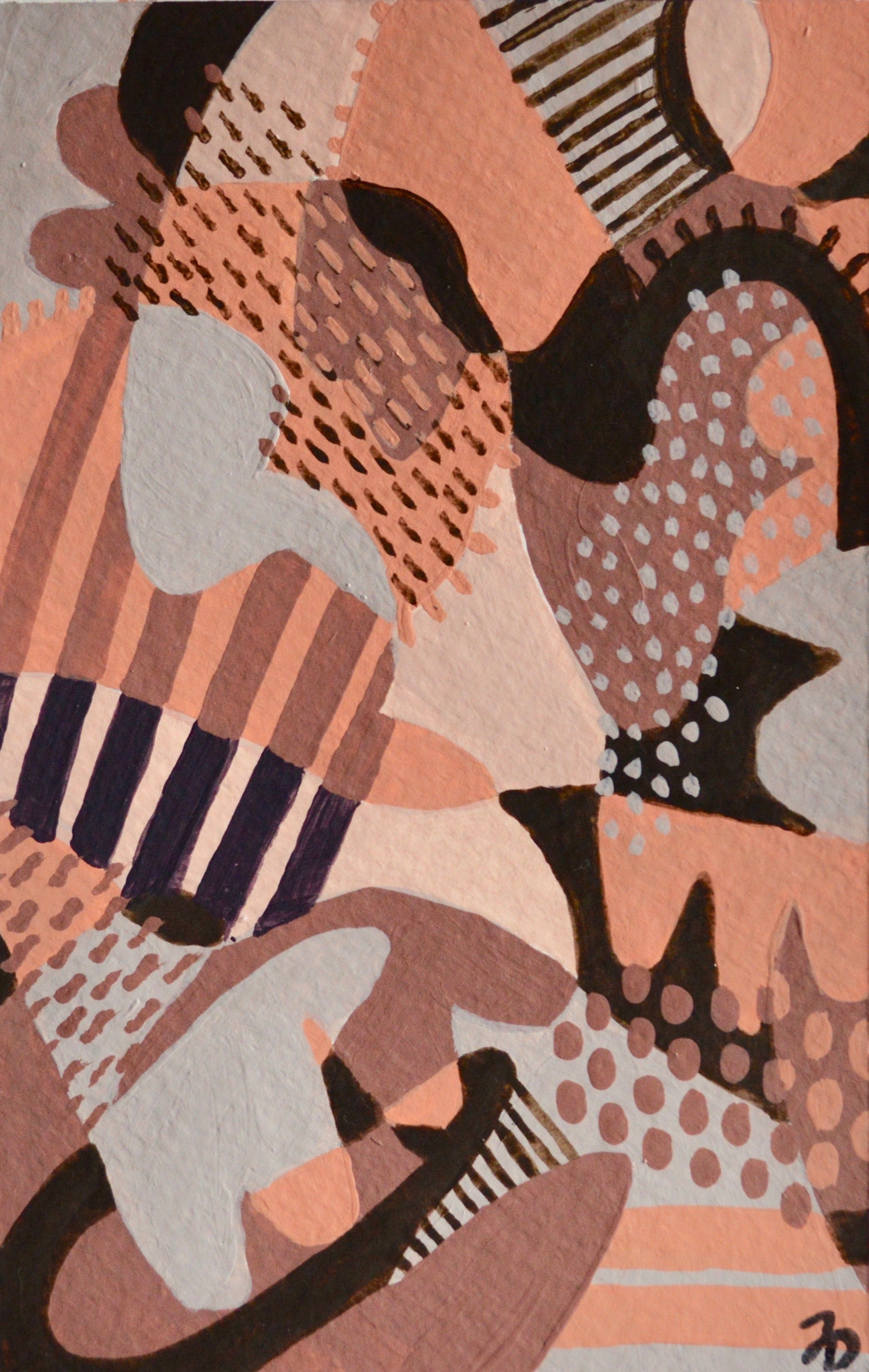 Tess Davies is an artist from Nashville, TN. She graduated cum laude from Sewanee: The University of the South with a B.F.A under the honors program in 2014. Her studio practices include murals, acrylic and oil painting, with a focus on natural textures, layered spaces and dualities. She takes inspiration from escapism and natural and biological textures and forms. "My work explores dualities. It restructures familiar, natural objects into a composition of disparate parts. It combines intricate details found in natural textures, fluidity, and chaos. Stillness and movement, color and contrast, and structure and looseness are all prevalent dualities in my work. The purpose of my practice is to address various inevitabilities in life. I am inspired by escapism and utilize this coping mechanism in my work. I use natural symbolism and feminine tropes, seen in the color palette and various natural forms. Common themes include decay, disease, growth, genetics, femininity, and repetition. I draw on personal issues and anxieties that bring people together, while simultaneously causing divides. I address what separates and connects us, and the cyclical nature of life and human tendencies. The painted, abstract beings represent our tendencies to compartmentalize and reveal personal anxieties. They transition in and out of abstractions and natural forms. This movement between the real and the imagined is representational of escapism. Creating these patterns, and repeating them intricately and deliberately, directly correlates to our repeated tendencies. It is also representative of the constant division of cells and growth found in the processes of decay and rebirth. By using natural metaphors, the purpose of this work is to beautify the inevitable."