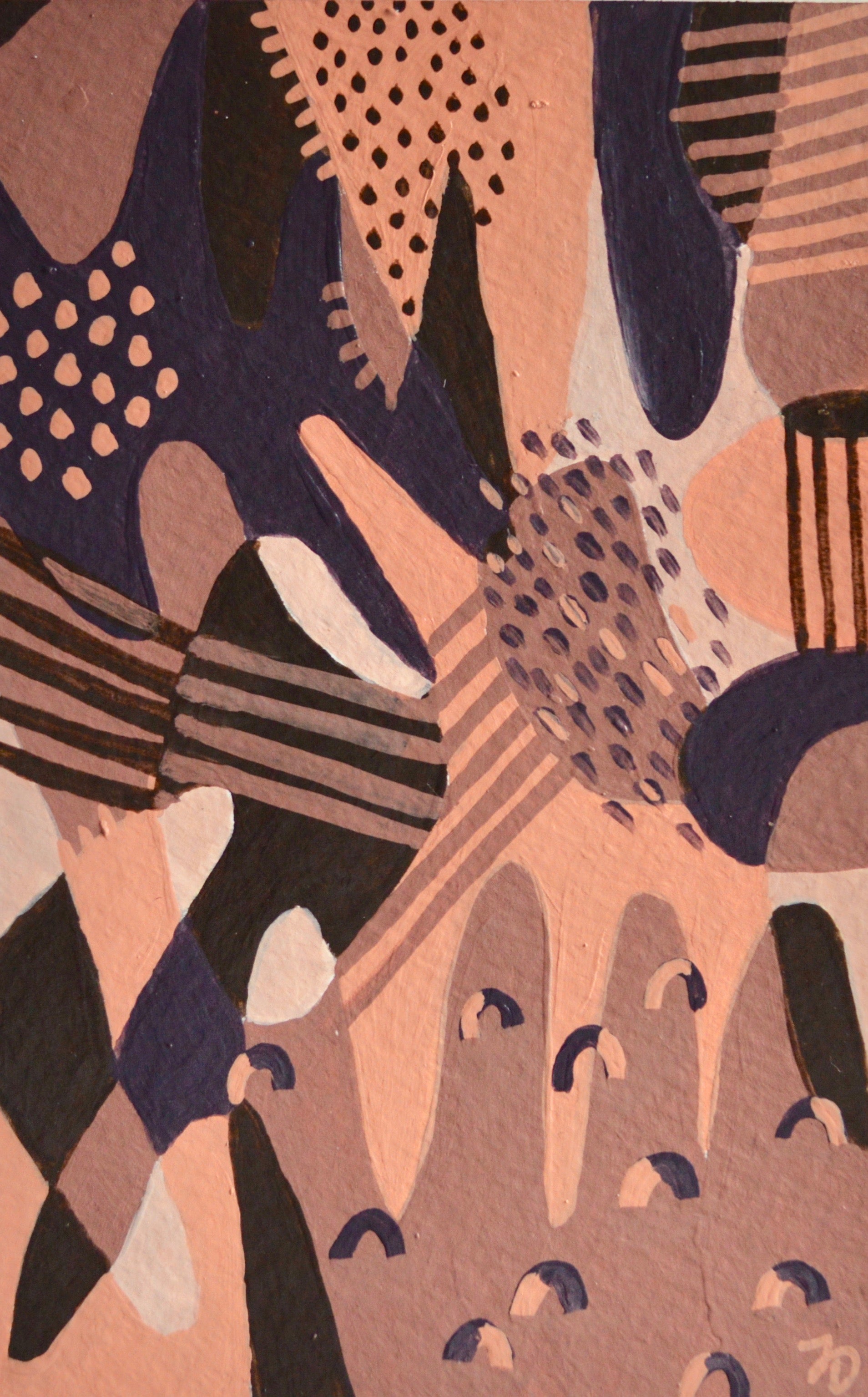 Tess Davies is an artist from Nashville, TN. She graduated cum laude from Sewanee: The University of the South with a B.F.A under the honors program in 2014. Her studio practices include murals, acrylic and oil painting, with a focus on natural textures, layered spaces and dualities. She takes inspiration from escapism and natural and biological textures and forms. "My work explores dualities. It restructures familiar, natural objects into a composition of disparate parts. It combines intricate details found in natural textures, fluidity, and chaos. Stillness and movement, color and contrast, and structure and looseness are all prevalent dualities in my work. The purpose of my practice is to address various inevitabilities in life. I am inspired by escapism and utilize this coping mechanism in my work. I use natural symbolism and feminine tropes, seen in the color palette and various natural forms. Common themes include decay, disease, growth, genetics, femininity, and repetition. I draw on personal issues and anxieties that bring people together, while simultaneously causing divides. I address what separates and connects us, and the cyclical nature of life and human tendencies. The painted, abstract beings represent our tendencies to compartmentalize and reveal personal anxieties. They transition in and out of abstractions and natural forms. This movement between the real and the imagined is representational of escapism. Creating these patterns, and repeating them intricately and deliberately, directly correlates to our repeated tendencies. It is also representative of the constant division of cells and growth found in the processes of decay and rebirth. By using natural metaphors, the purpose of this work is to beautify the inevitable."
