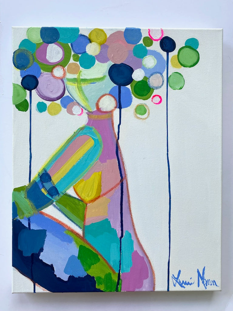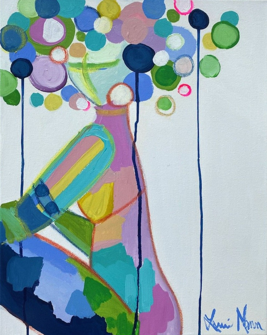 Art has been a part of my life from the very beginning. I was raised in North Carolina where my mother, an artist and art teacher, filled my childhood with projects and books and conversations about color and composition. Later, I took studio classes, studied art history and lived abroad in Florence, Italy where my passion for painting became clear. I am inspired daily by aesthetic beauty around me, which inspires my colors and compositions that are clean, fresh and balanced. My goal is for the aesthetic beauty of my art to evoke an emotional response that brings joy, lifts the spirit and reminds one of goodness and beauty within the soul. I believe one can find solace from the imperfections and messiness of life through the beauty of art. My preferred mediums are acrylic and oil pastels and I use canvases of all sizes to explore color and energy in abstract pieces, as well in my figurative pieces. Lanie has worked as a professional artist for 10 years and lives in Washington, DC with her husband, twin sons, daughter and two dogs.