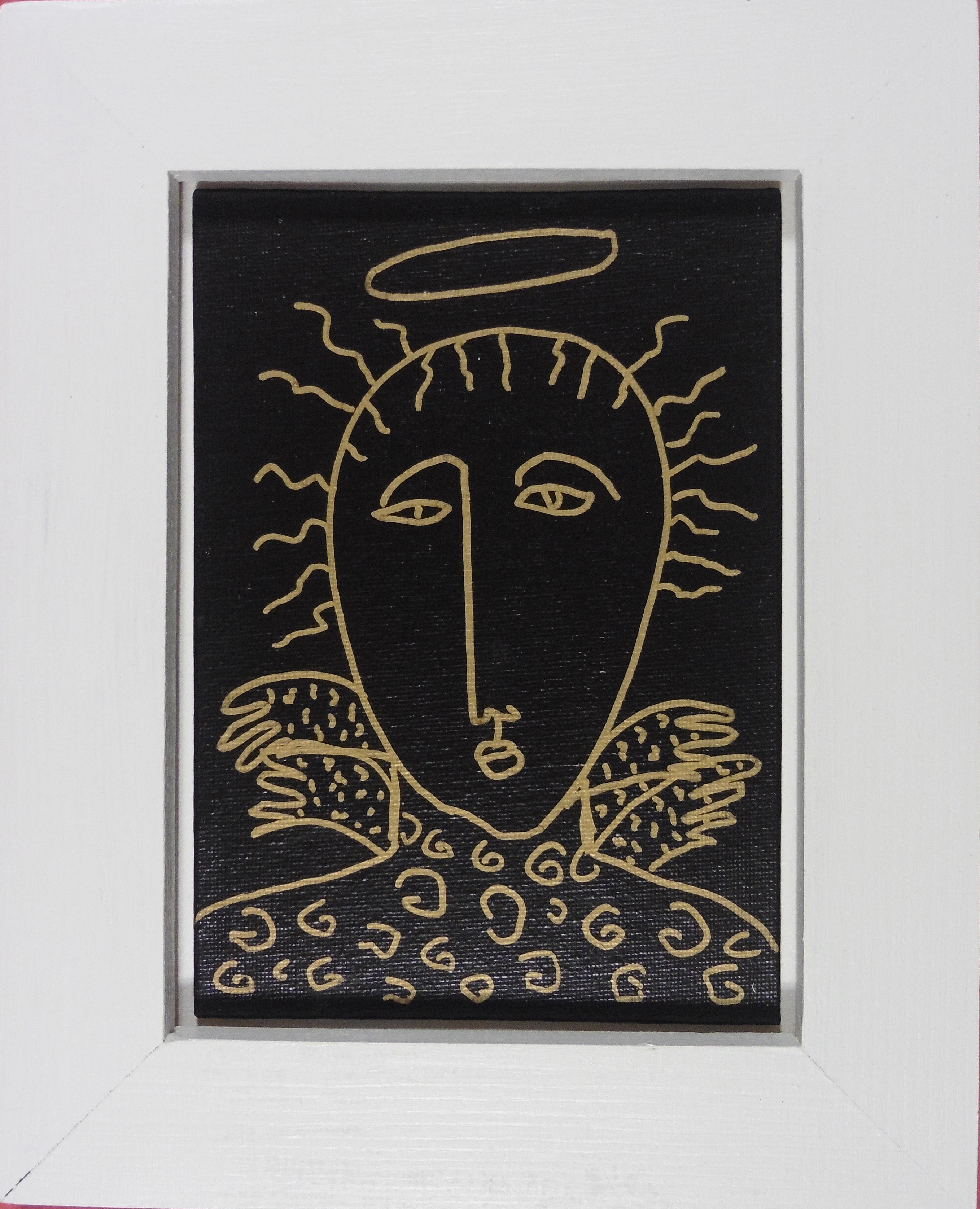 acrylic on canvas panel, in white wood frame