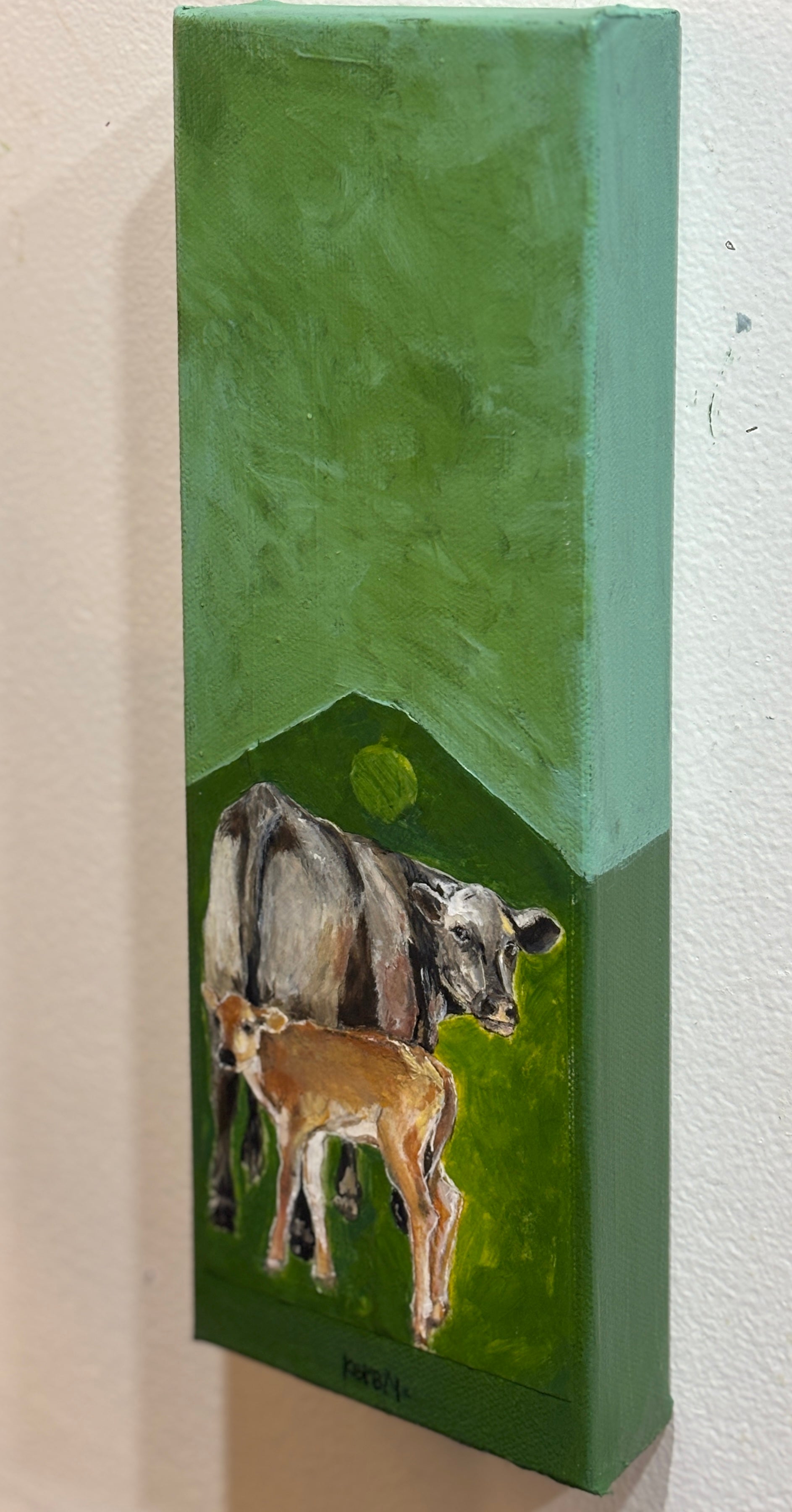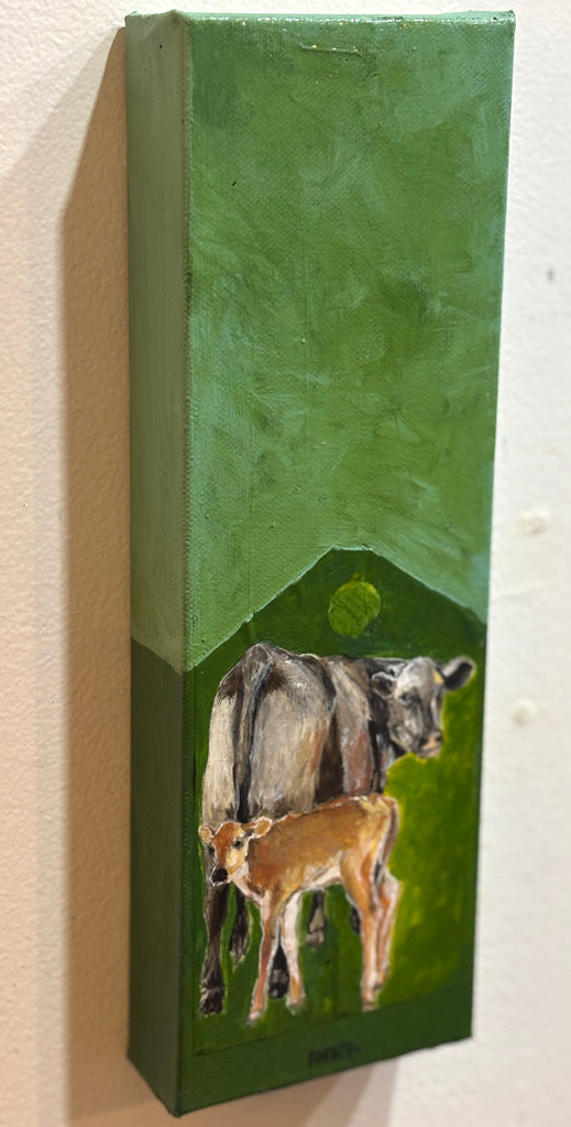 A lifelong artist, I make art because coming up with an idea is what gets me out of bed in the morning and into my studio, mercifully located in my home. So much of what I love in life is at home- my pets inside and wildlife out, nature pouring through the windows, comfortably cluttered rooms full of books and art, the forest surrounding me. My art originates with that early morning idea, a daily walk in the woods, the imagery around me. The deep connection to my surroundings is reflected in the art I make, even using pages of books in my art and the book itself as the canvas with the animals love as the subject. Animal and landscape renderings in mixed media, storytelling dioramas and large works on canvas all have a similar feel of natural wonder.