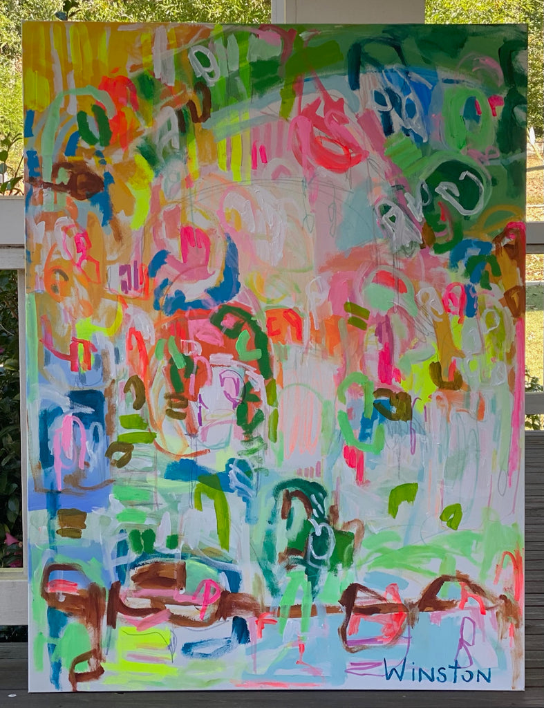 Winston Wiant is originally from Amelia Island, Florida, and full of southern charm. She brings her whimsical and witty delight to each and every painting. Having painted since childhood, she received a Bachelor of Arts degree in Studio Art at Brenau University and has been pursuing her love of art ever since. Her paintings are full of texture, using the palette knife and free brushstrokes to layer the paint, creating one energetic piece after another. She lives in Athens, GA, with her husband and two daughters and paints in her home studio. “Art to me is a form of self-expression. The way I feel that day reflects in my work. My love of bold color and texture is both distinctive and captivating.”