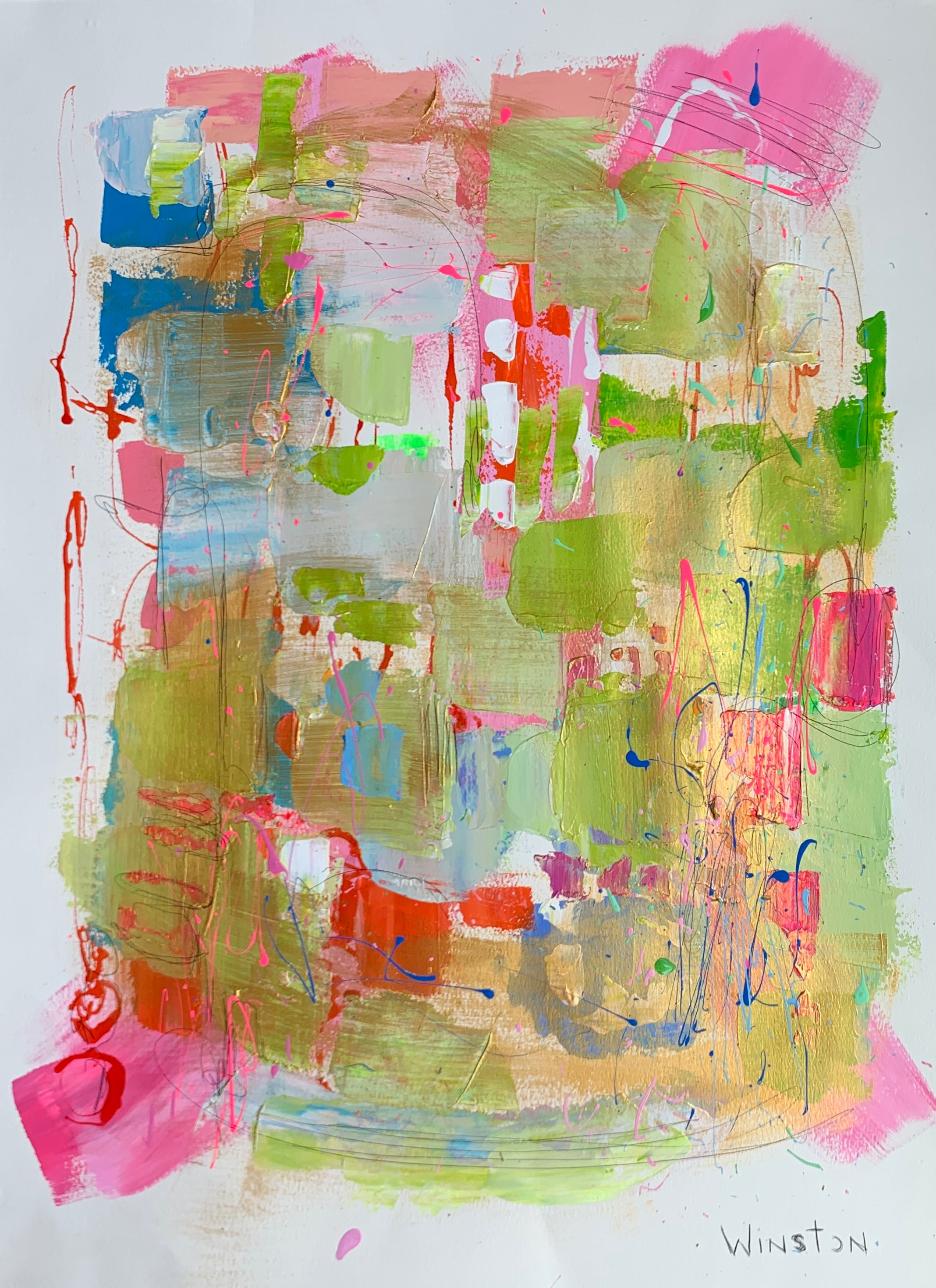 Winston Wiant is originally from Amelia Island, Florida, and full of southern charm. She brings her whimsical and witty delight to each and every painting. Having painted since childhood, she received a Bachelor of Arts degree in Studio Art at Brenau University and has been pursuing her love of art ever since. Her paintings are full of texture, using the palette knife and free brushstrokes to layer the paint, creating one energetic piece after another. She lives in Athens, GA, with her husband and two daughters and paints in her home studio. “Art to me is a form of self-expression. The way I feel that day reflects in my work. My love of bold color and texture is both distinctive and captivating.”
