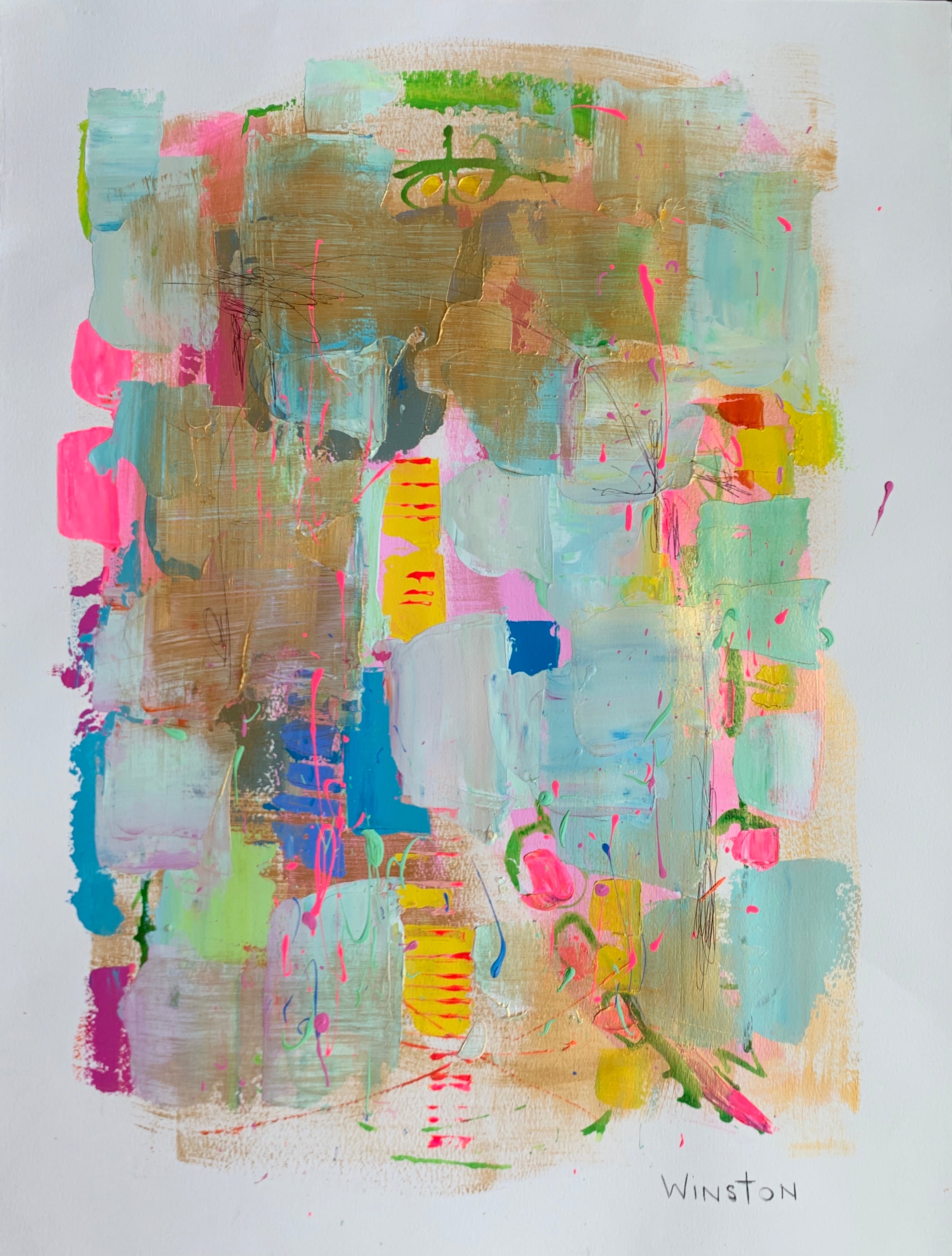 Winston Wiant is originally from Amelia Island, Florida, and full of southern charm. She brings her whimsical and witty delight to each and every painting. Having painted since childhood, she received a Bachelor of Arts degree in Studio Art at Brenau University and has been pursuing her love of art ever since. Her paintings are full of texture, using the palette knife and free brushstrokes to layer the paint, creating one energetic piece after another. She lives in Athens, GA, with her husband and two daughters and paints in her home studio. “Art to me is a form of self-expression. The way I feel that day reflects in my work. My love of bold color and texture is both distinctive and captivating.”
