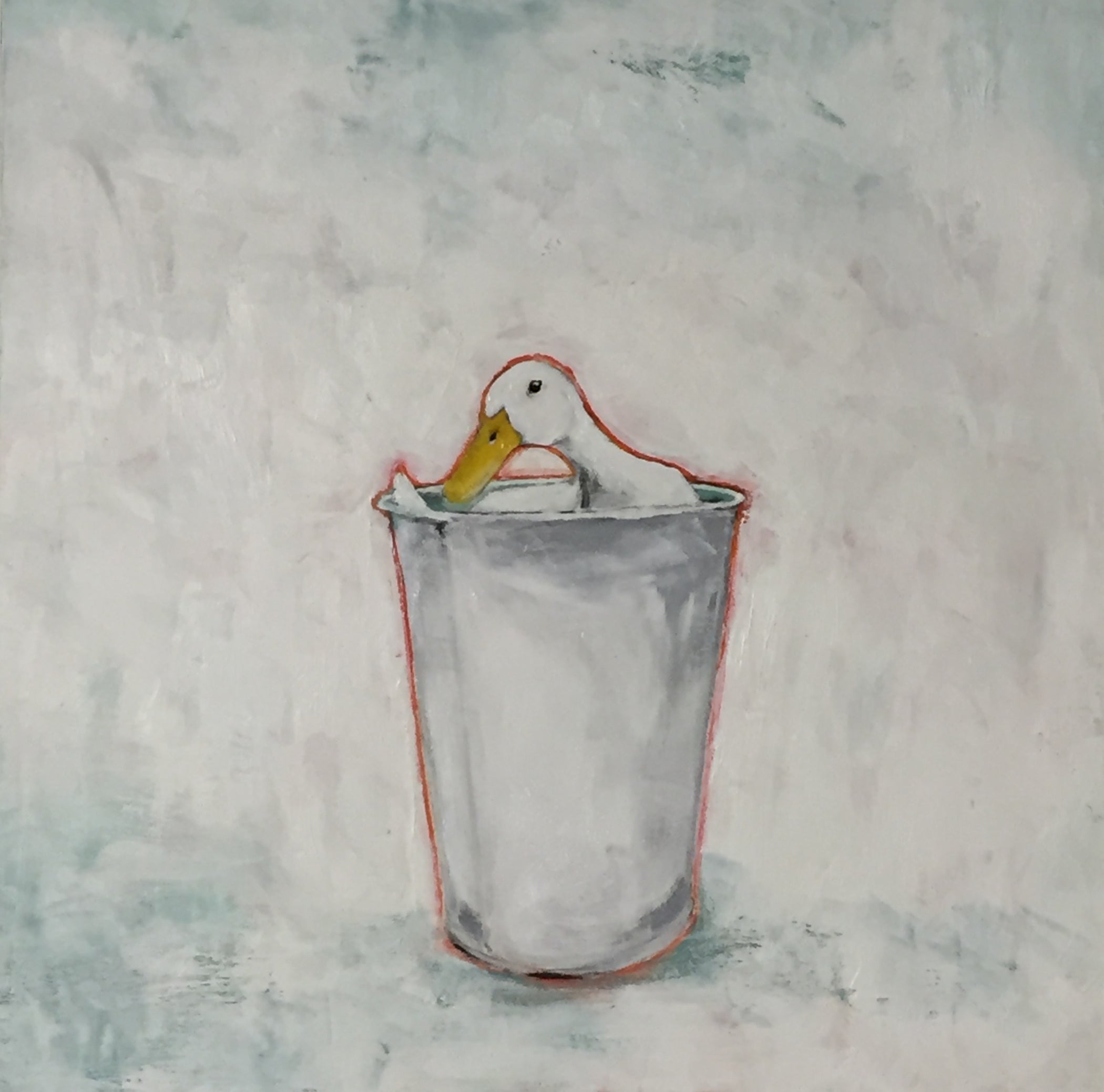 A lifelong artist, I make art because coming up with an idea is what gets me out of bed in the morning and into my studio, mercifully located in my home. So much of what I love in life is at home- my pets inside and wildlife out, nature pouring through the windows, comfortably cluttered rooms full of books and art, the forest surrounding me. My art originates with that early morning idea, a daily walk in the woods, the imagery around me. The deep connection to my surroundings is reflected in the art I make, even using pages of books in my art and the book itself as the canvas with the animals love as the subject. Animal and landscape renderings in mixed media, storytelling dioramas and large works on canvas all have a similar feel of natural wonder.