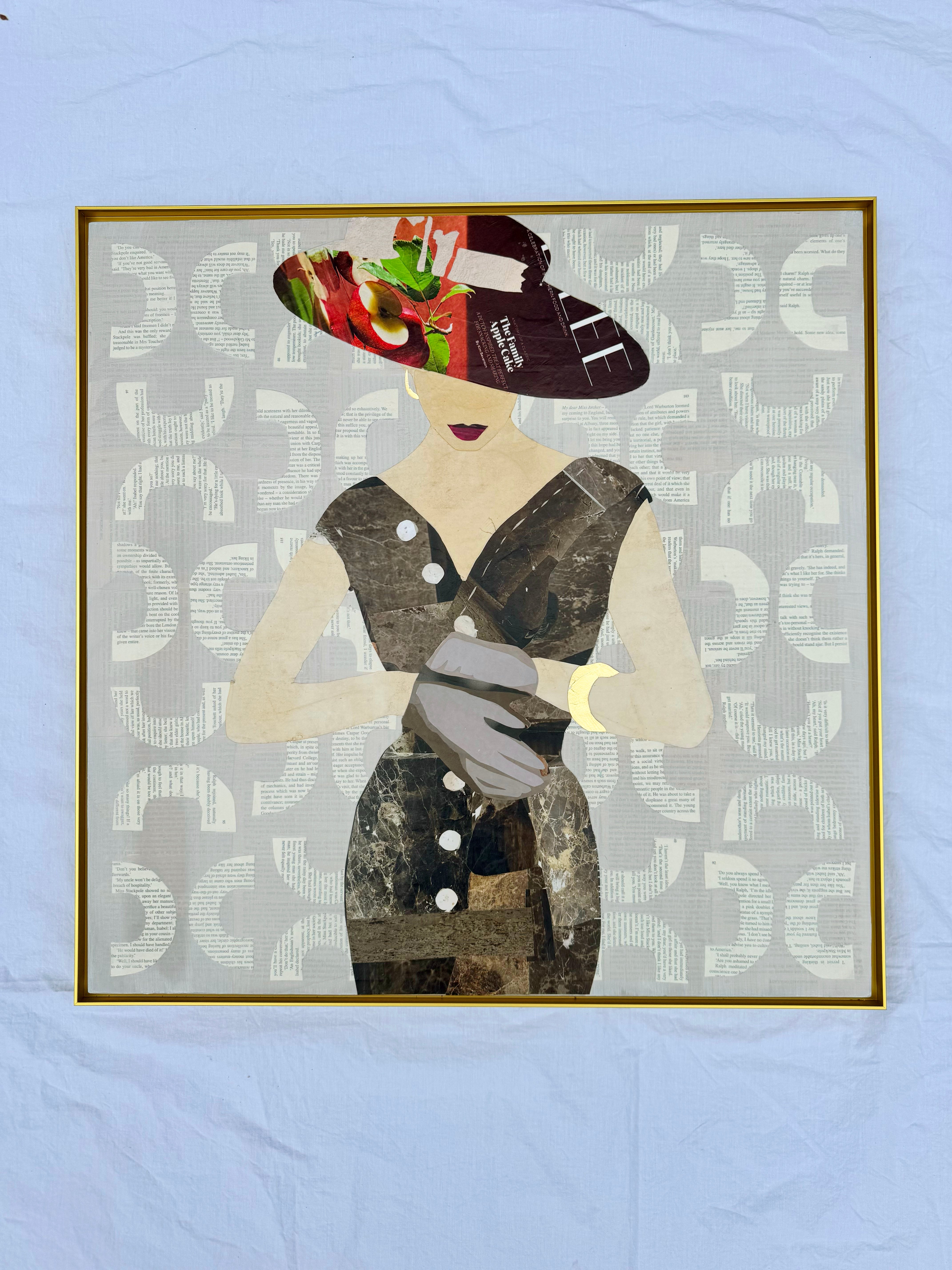 Melissa Ellen is a self-taught mixed-media artist based in Nashville, TN. Her work merges collective memory with modern perspectives, using layered materials like magazine clippings and vintage book pages to reimagine familiar images. Through her intricate compositions, Melissa invites viewers to explore the connections between history and today, offering nostalgia with a contemporary twist. In her twenties, Melissa specialized in print design before founding and running a successful magazine and online marketplace for the lifting and construction industry. After the premature birth of her fourth child, she chose to sell her business and dedicate her time to family. A move to North Carolina in 2020 reignited her passion for art, where she began exploring themes of transformation, memory, and identity through her unique collage-based style. Now back in Nashville since 2022, Melissa continues her creative journey while balancing life with her husband and four children. Her work reflects an enduring curiosity about the connections between the past and present, bringing depth and storytelling to each piece.