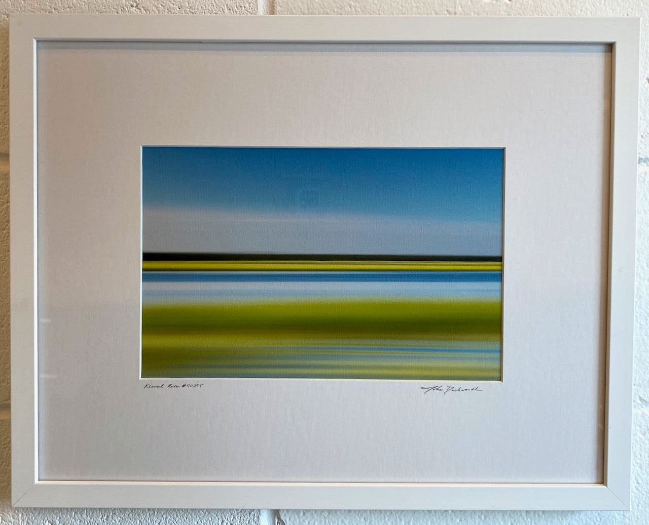 abstract landscape photograph mounted on foam core, matted and framed in white