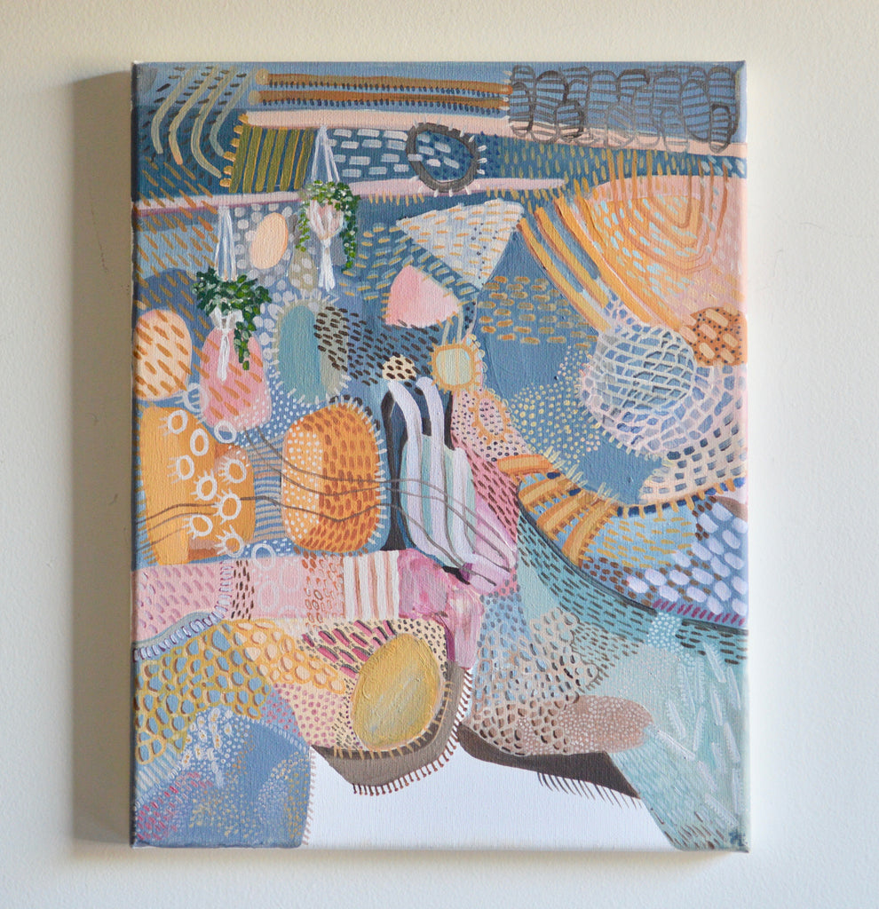 Tess Davies is an artist from Nashville, TN. She graduated cum laude from Sewanee: The University of the South with a B.F.A under the honors program in 2014. Her studio practices include murals, acrylic and oil painting, with a focus on natural textures, layered spaces and dualities. She takes inspiration from escapism and natural and biological textures and forms. "My work explores dualities. It restructures familiar, natural objects into a composition of disparate parts. It combines intricate details found in natural textures, fluidity, and chaos. Stillness and movement, color and contrast, and structure and looseness are all prevalent dualities in my work. The purpose of my practice is to address various inevitabilities in life. I am inspired by escapism and utilize this coping mechanism in my work. I use natural symbolism and feminine tropes, seen in the color palette and various natural forms. Common themes include decay, disease, growth, genetics, femininity, and repetition. I draw on personal issues and anxieties that bring people together, while simultaneously causing divides. I address what separates and connects us, and the cyclical nature of life and human tendencies. The painted, abstract beings represent our tendencies to compartmentalize and reveal personal anxieties. They transition in and out of abstractions and natural forms. This movement between the real and the imagined is representational of escapism. Creating these patterns, and repeating them intricately and deliberately, directly correlates to our repeated tendencies. It is also representative of the constant division of cells and growth found in the processes of decay and rebirth. By using natural metaphors, the purpose of this work is to beautify the inevitable."