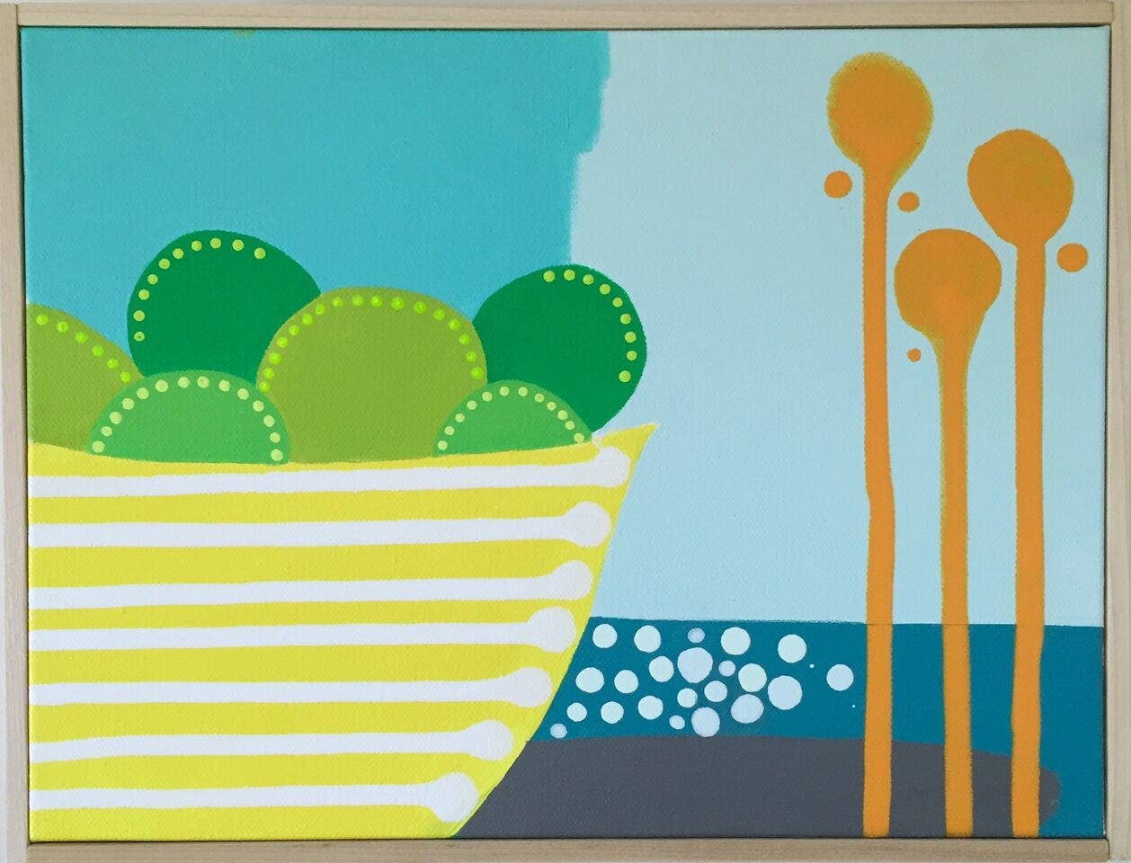 Cindy DeAntonio is a mixed media artist who uses distinct lines and shapes to create her unique and highly recognizable style. Her work is comprised of abstracts, modern interpretations of traditional lowcountry landscapes, and cubist inspired still lifes. She draws inspiration from a variety of sources including fashion, design and her natural surroundings. Cindys love of bold colors and balance are apparent in each one of her pieces. Her work have been featured in Coastal Living, Serena and Lily, Garden and Gun, and SIP magazine. Cindy grew up in Columbia, South Carolina and earned a Studio Art degree from the University of South Carolina. She currently lives on Isle of Palms, SC with her family.