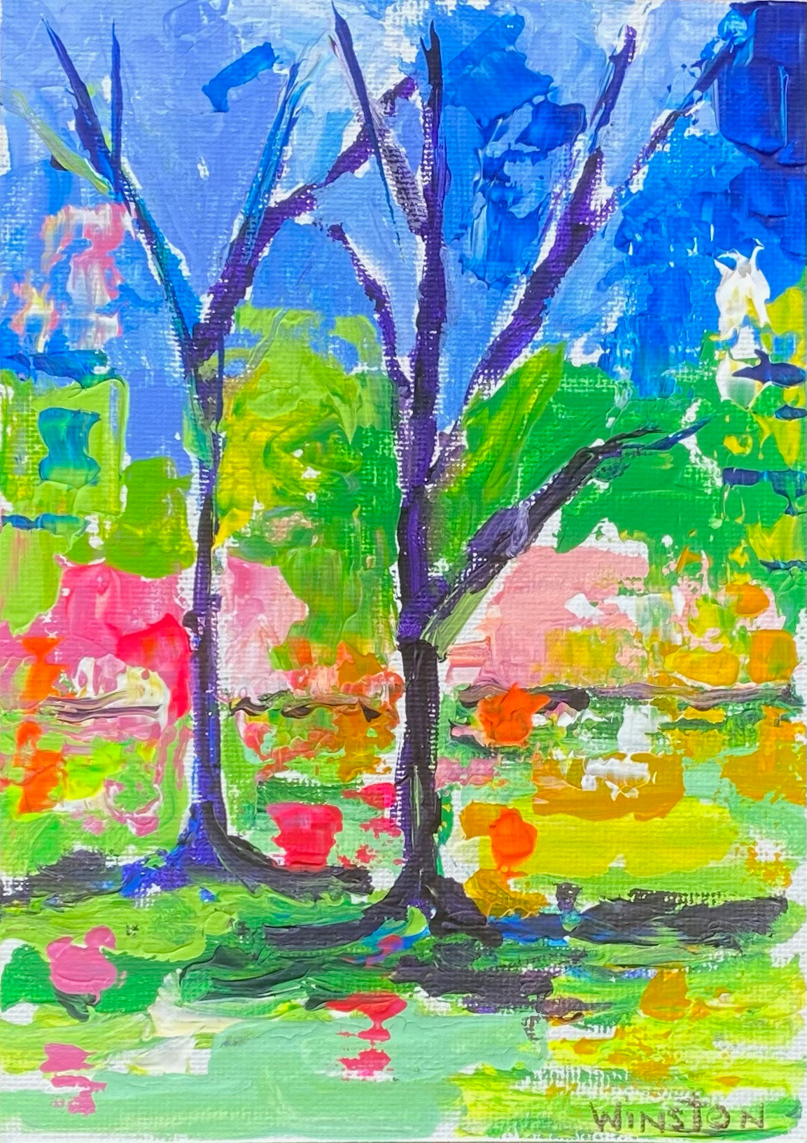 Winston Wiant is originally from Amelia Island, Florida, and full of southern charm. She brings her whimsical and witty delight to each and every painting. Having painted since childhood, she received a Bachelor of Arts degree in Studio Art at Brenau University and has been pursuing her love of art ever since. Her paintings are full of texture, using the palette knife and free brushstrokes to layer the paint, creating one energetic piece after another. She lives in Athens, GA, with her husband and two daughters and paints in her home studio. “Art to me is a form of self-expression. The way I feel that day reflects in my work. My love of bold color and texture is both distinctive and captivating.”