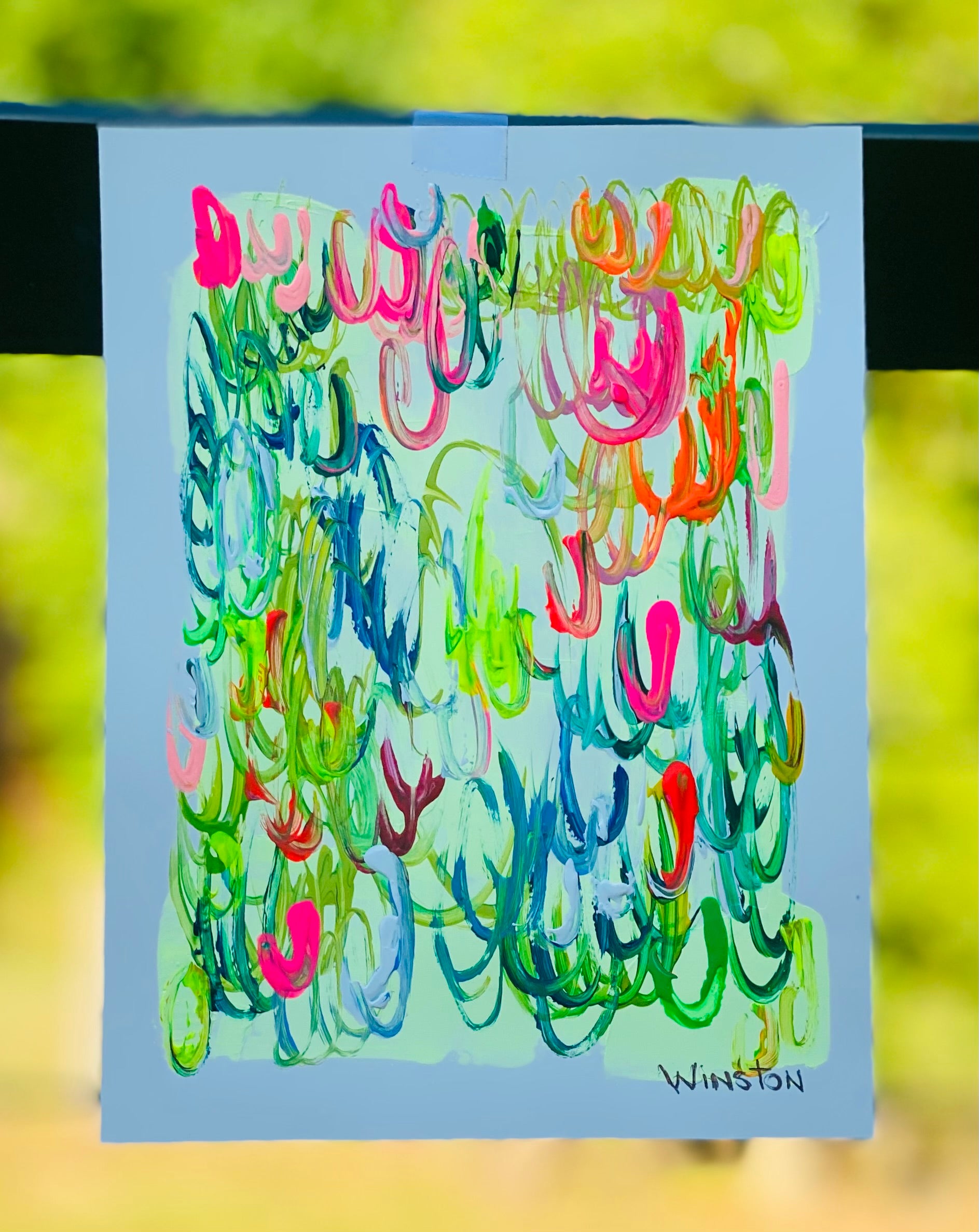 Winston Wiant is originally from Amelia Island, Florida, and full of southern charm. She brings her whimsical and witty delight to each and every painting. Having painted since childhood, she received a Bachelor of Arts degree in Studio Art at Brenau University and has been pursuing her love of art ever since. Her paintings are full of texture, using the palette knife and free brushstrokes to layer the paint, creating one energetic piece after another. She lives in Athens, GA, with her husband and two daughters and paints in her home studio. “Art to me is a form of self-expression. The way I feel that day reflects in my work. My love of bold color and texture is both distinctive and captivating.”