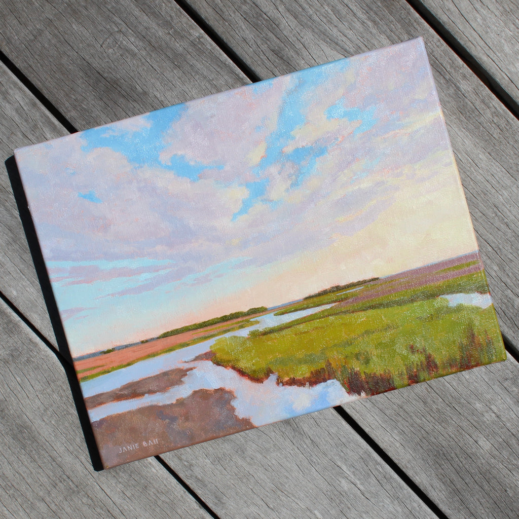 Janie Ball a Charleston native. The Rhode Island School of Design (RISD) graduate has had a successful marketing career winning ADDY and CASE Awards prior to returning to fine art full time. Her paintings are composed of bold thoughtful shapes of color which when visually combined by the viewer "paint" the image, be it en plein air, contemporary realism, or abstract expressionism. The Charleston Artist Collective member’s paintings are in private and corporate collections including the Belmond Charleston Place and MUSC Children’s Hospital. Janie’s work has been exhibited in solo and group shows, as far away as Portland, Maine. In Spring of 2017, her painting “Out of the Blue” was selected as the Community Choice Winner for ArtPop Street Gallery of Charleston, to be featured on an Adams Outdoor Advertising 14-foot x 48-foot billboard for a year. http://janieballpaints.com/