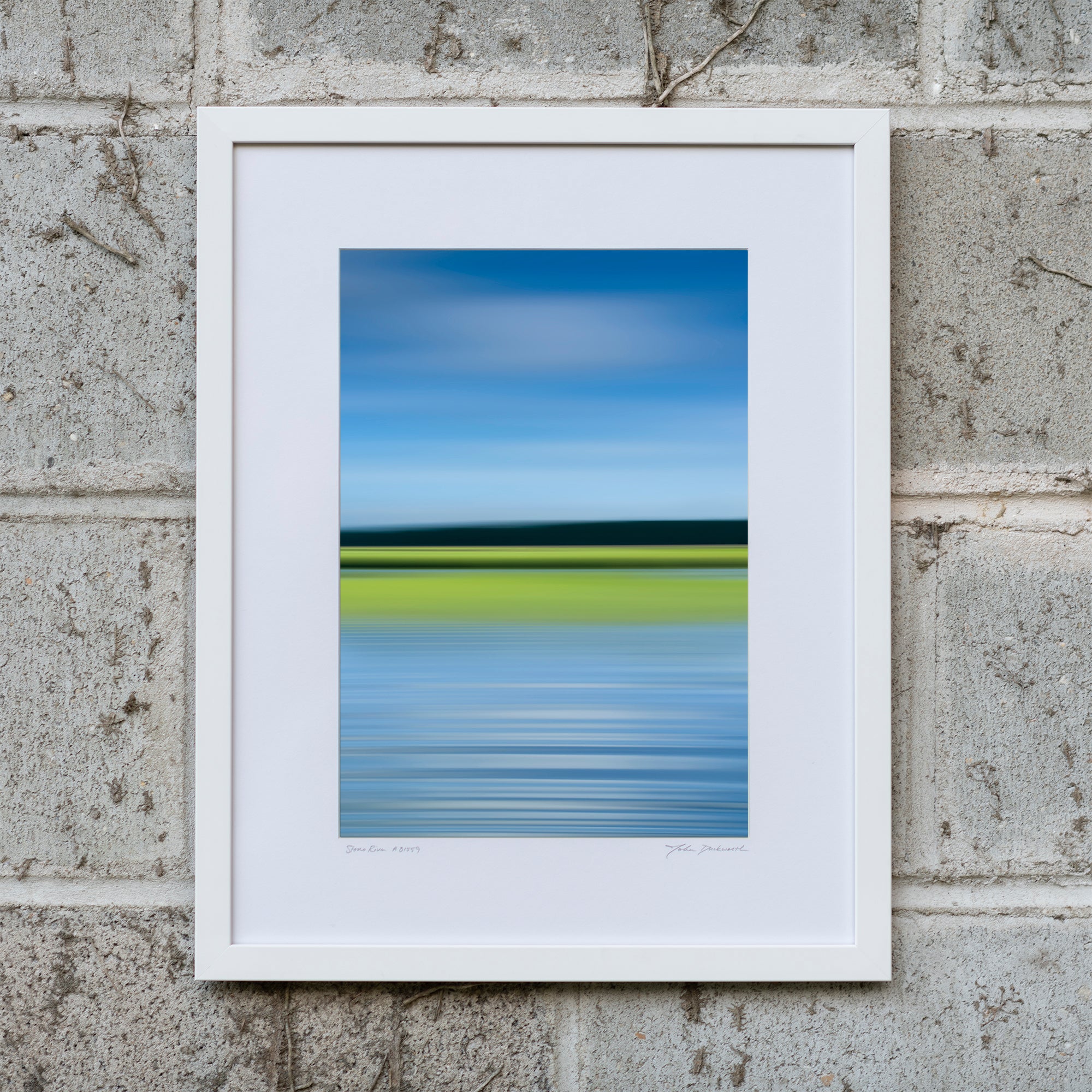abstract landscape photograph on foam core, matted and framed in white