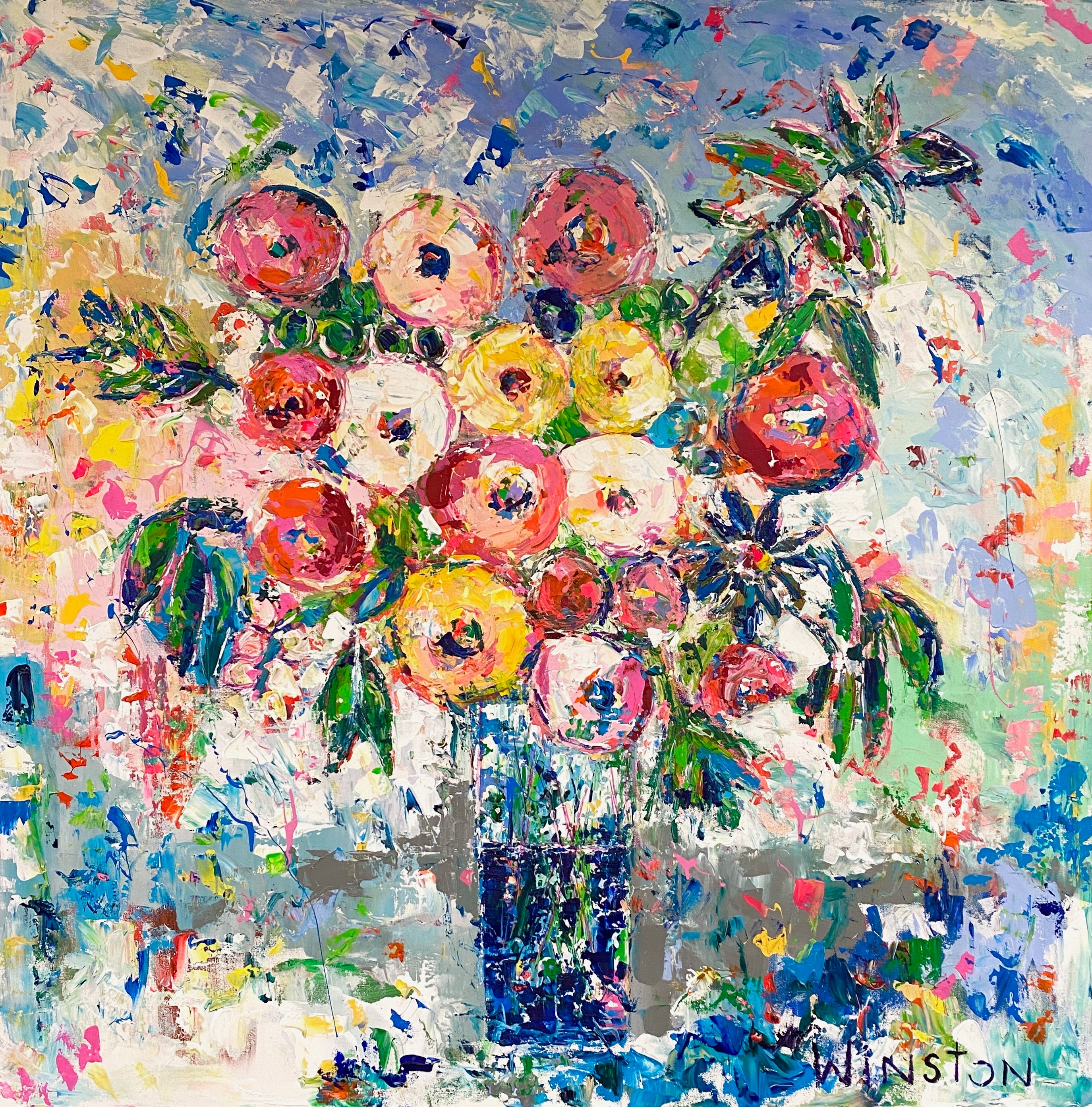 Winston Wiant is originally from Amelia Island, Florida, and full of southern charm. She brings her whimsical and witty delight to each and every painting. Having painted since childhood, she received a Bachelor of Arts degree in Studio Art at Brenau University and has been pursuing her love of art ever since. Her paintings are full of texture, using the palette knife and free brushstrokes to layer the paint, creating one energetic piece after another. She lives in Athens, GA, with her husband and two daughters and paints in her home studio. “Art to me is a form of self-expression. The way I feel that day reflects in my work. My love of bold color and texture is both distinctive and captivating.”