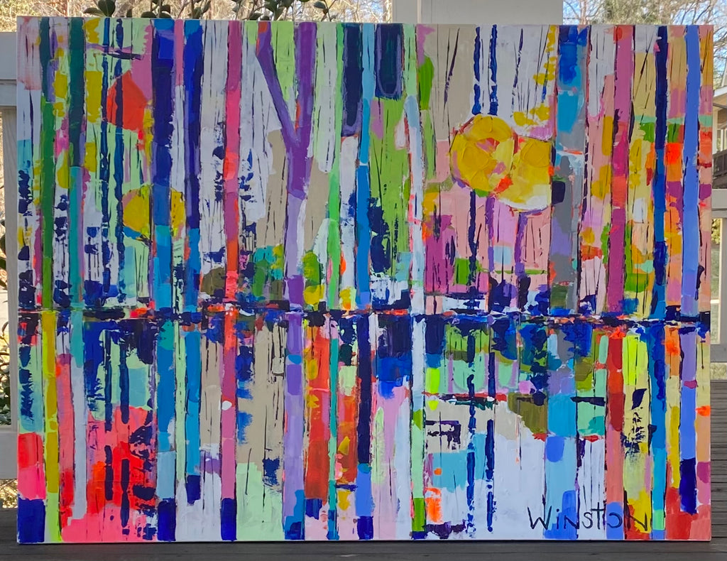Winston Wiant is originally from Amelia Island, Florida, and full of southern charm. She brings her whimsical and witty delight to each and every painting. Having painted since childhood, she received a Bachelor of Arts degree in Studio Art at Brenau University and has been pursuing her love of art ever since. Her paintings are full of texture, using the palette knife and free brushstrokes to layer the paint, creating one energetic piece after another. She lives in Athens, GA, with her husband and two daughters and paints in her home studio. “Art to me is a form of self-expression. The way I feel that day reflects in my work. My love of bold color and texture is both distinctive and captivating.”