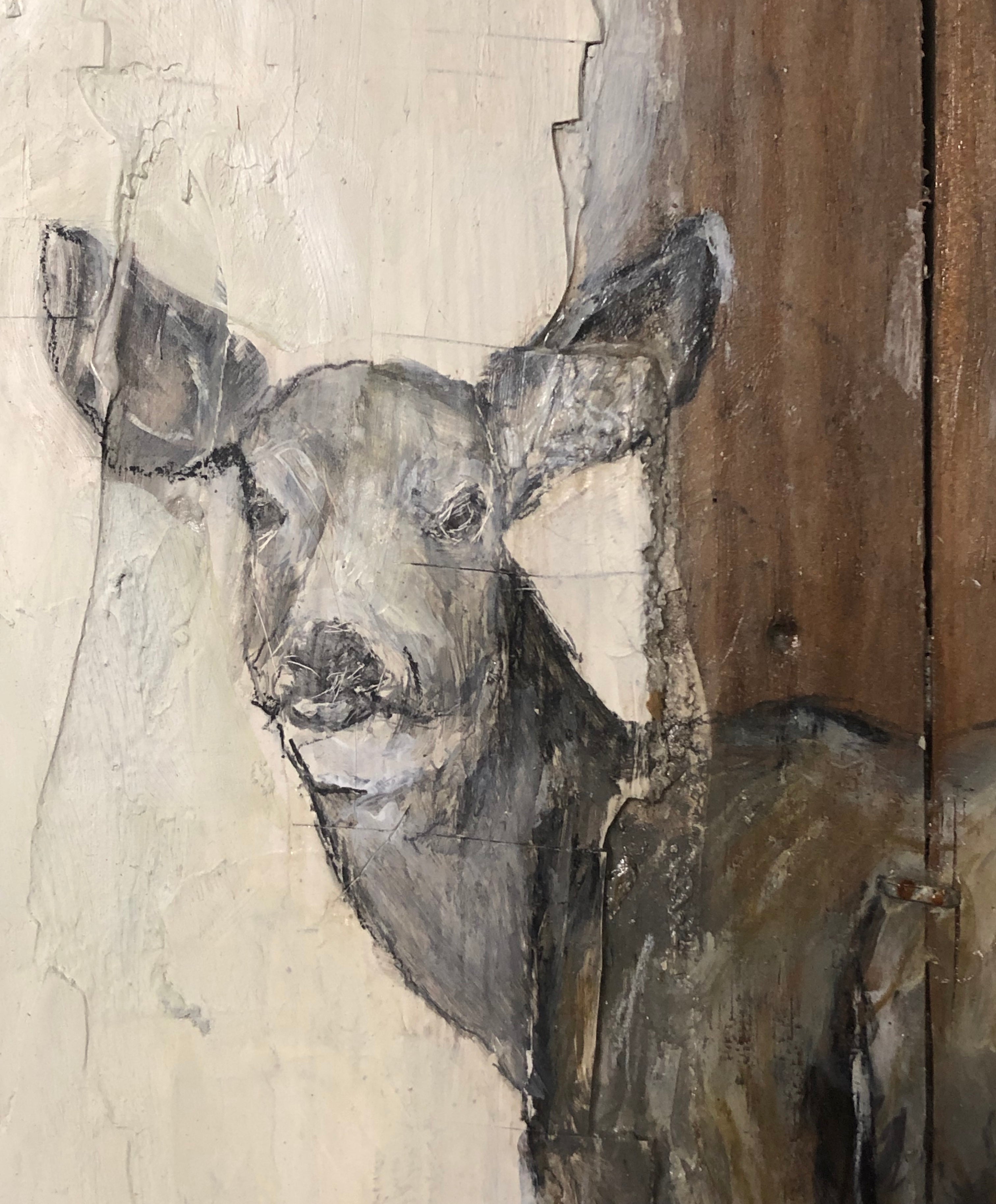 mixed media on found wood
