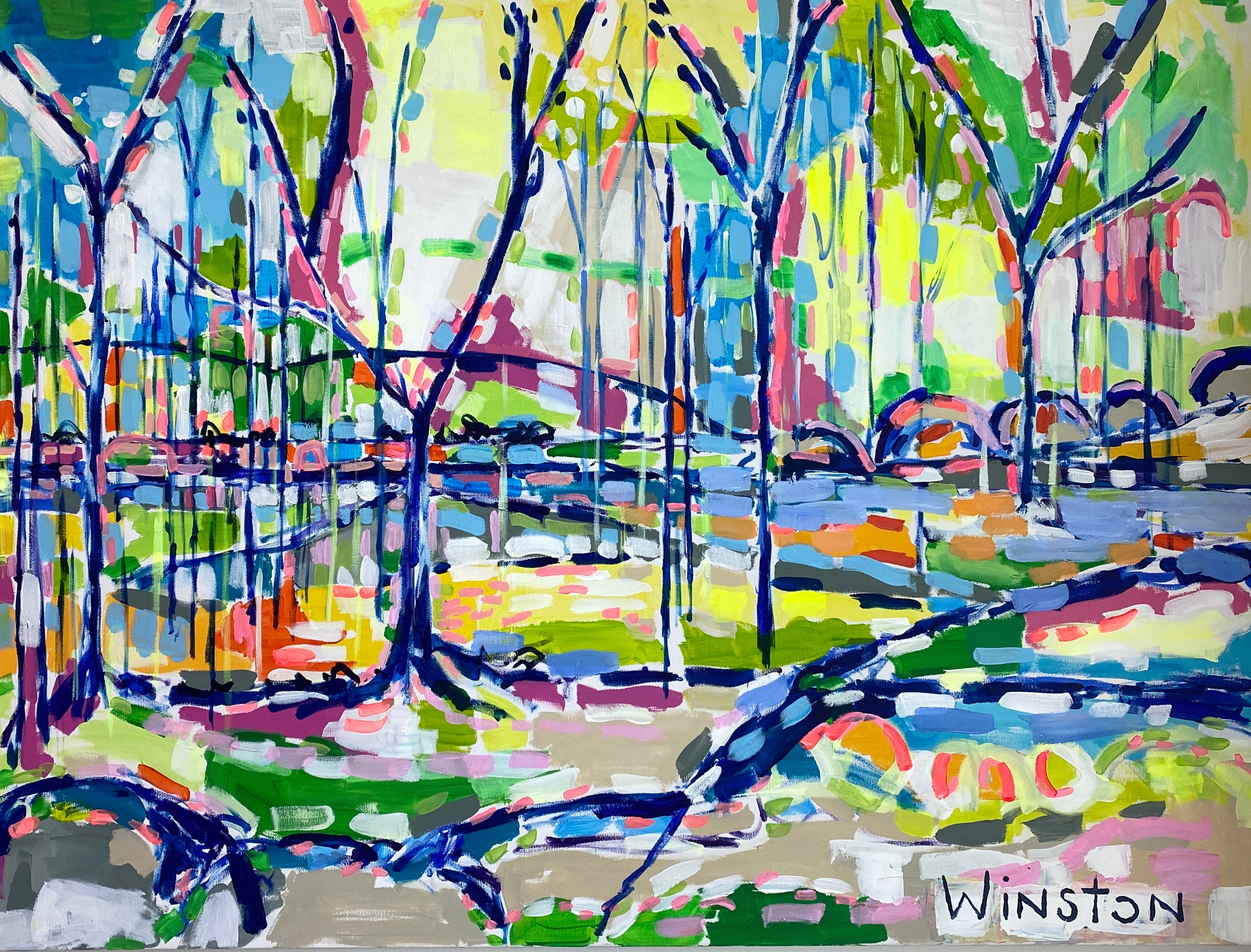 Winston Wiant is originally from Amelia Island, Florida, and full of southern charm. She brings her whimsical and witty delight to each and every painting. Having painted since childhood, she received a Bachelor of Arts degree in Studio Art at Brenau University and has been pursuing her love of art ever since. Her paintings are full of texture, using the palette knife and free brushstrokes to layer the paint, creating one energetic piece after another. She lives in Athens, GA, with her husband and two daughters and paints in her home studio. “Art to me is a form of self-expression. The way I feel that day reflects in my work. My love of bold color and texture is both distinctive and captivating.”