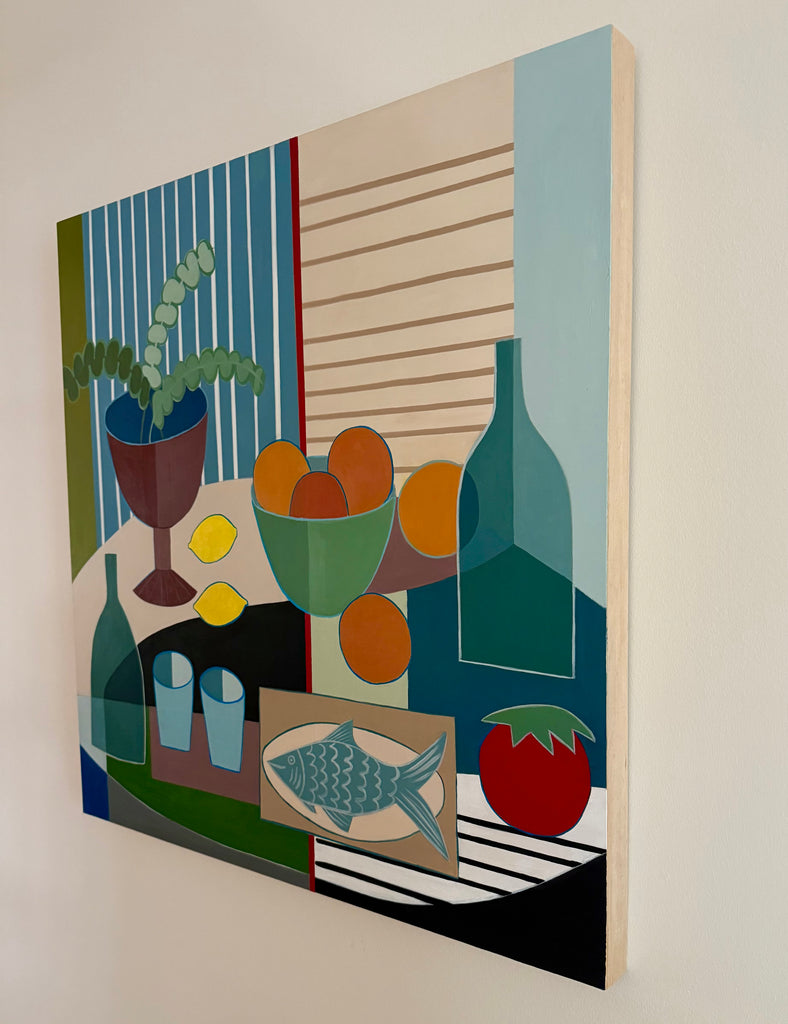 Cindy DeAntonio is a mixed media artist who uses distinct lines and shapes to create her unique and highly recognizable style. Her work is comprised of abstracts, modern interpretations of traditional lowcountry landscapes, and cubist inspired still lifes. She draws inspiration from a variety of sources including fashion, design and her natural surroundings. Cindys love of bold colors and balance are apparent in each one of her pieces. Her work have been featured in Coastal Living, Serena and Lily, Garden and Gun, and SIP magazine. Cindy grew up in Columbia, South Carolina and earned a Studio Art degree from the University of South Carolina. She currently lives on Isle of Palms, SC with her family.