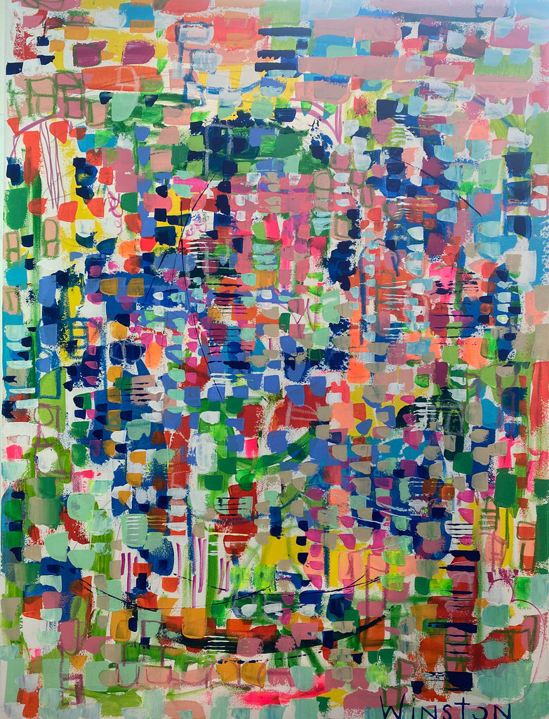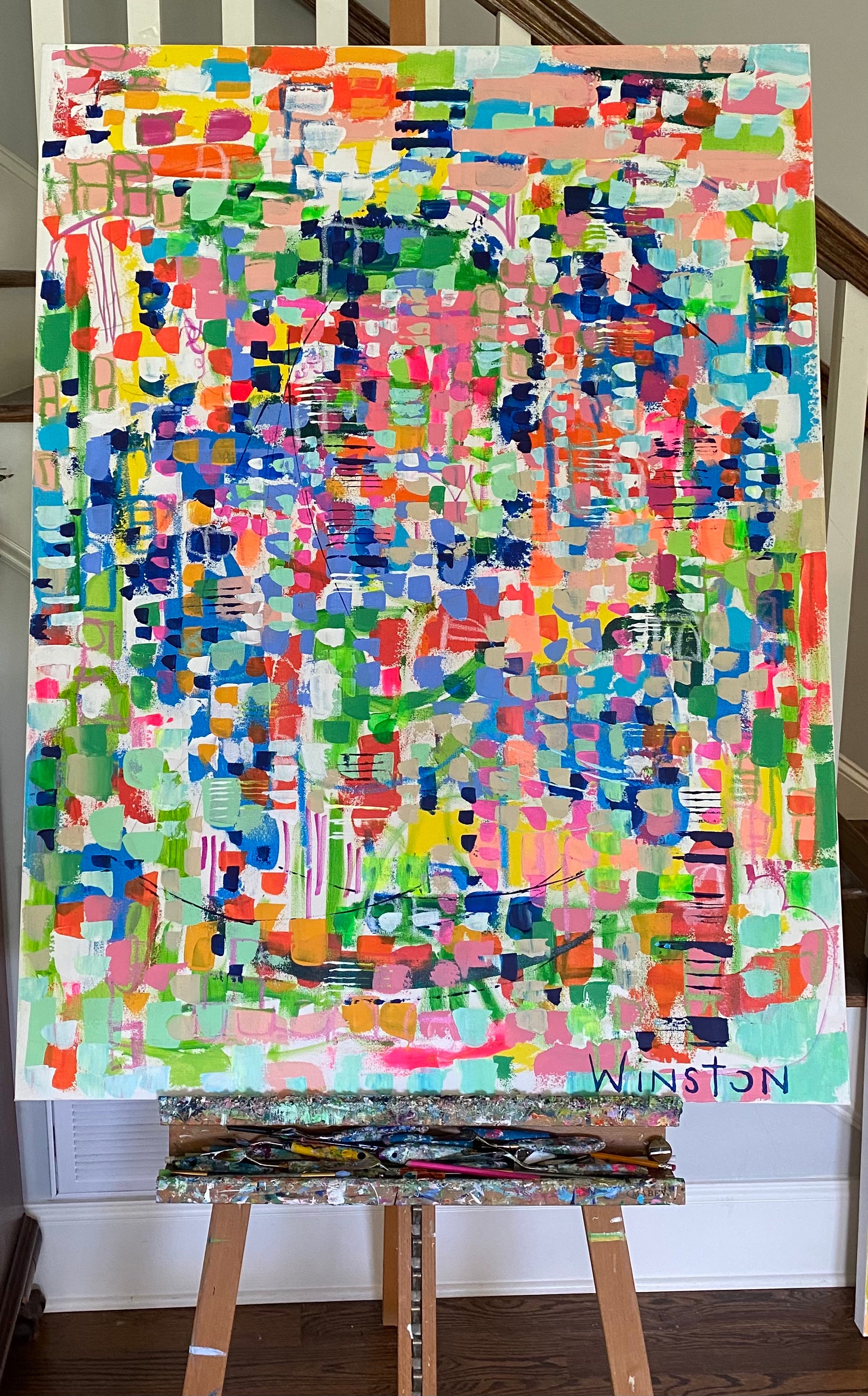 Winston Wiant is originally from Amelia Island, Florida, and full of southern charm. She brings her whimsical and witty delight to each and every painting. Having painted since childhood, she received a Bachelor of Arts degree in Studio Art at Brenau University and has been pursuing her love of art ever since. Her paintings are full of texture, using the palette knife and free brushstrokes to layer the paint, creating one energetic piece after another. She lives in Athens, GA, with her husband and two daughters and paints in her home studio. “Art to me is a form of self-expression. The way I feel that day reflects in my work. My love of bold color and texture is both distinctive and captivating.”