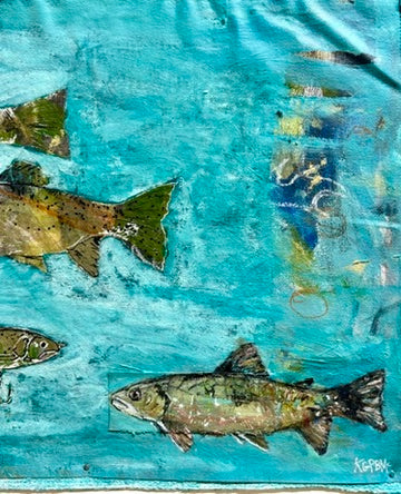 A lifelong artist, I make art because coming up with an idea is what gets me out of bed in the morning and into my studio, mercifully located in my home. So much of what I love in life is at home- my pets inside and wildlife out, nature pouring through the windows, comfortably cluttered rooms full of books and art, the forest surrounding me. My art originates with that early morning idea, a daily walk in the woods, the imagery around me. The deep connection to my surroundings is reflected in the art I make, even using pages of books in my art and the book itself as the canvas with the animals love as the subject. Animal and landscape renderings in mixed media, storytelling dioramas and large works on canvas all have a similar feel of natural wonder.