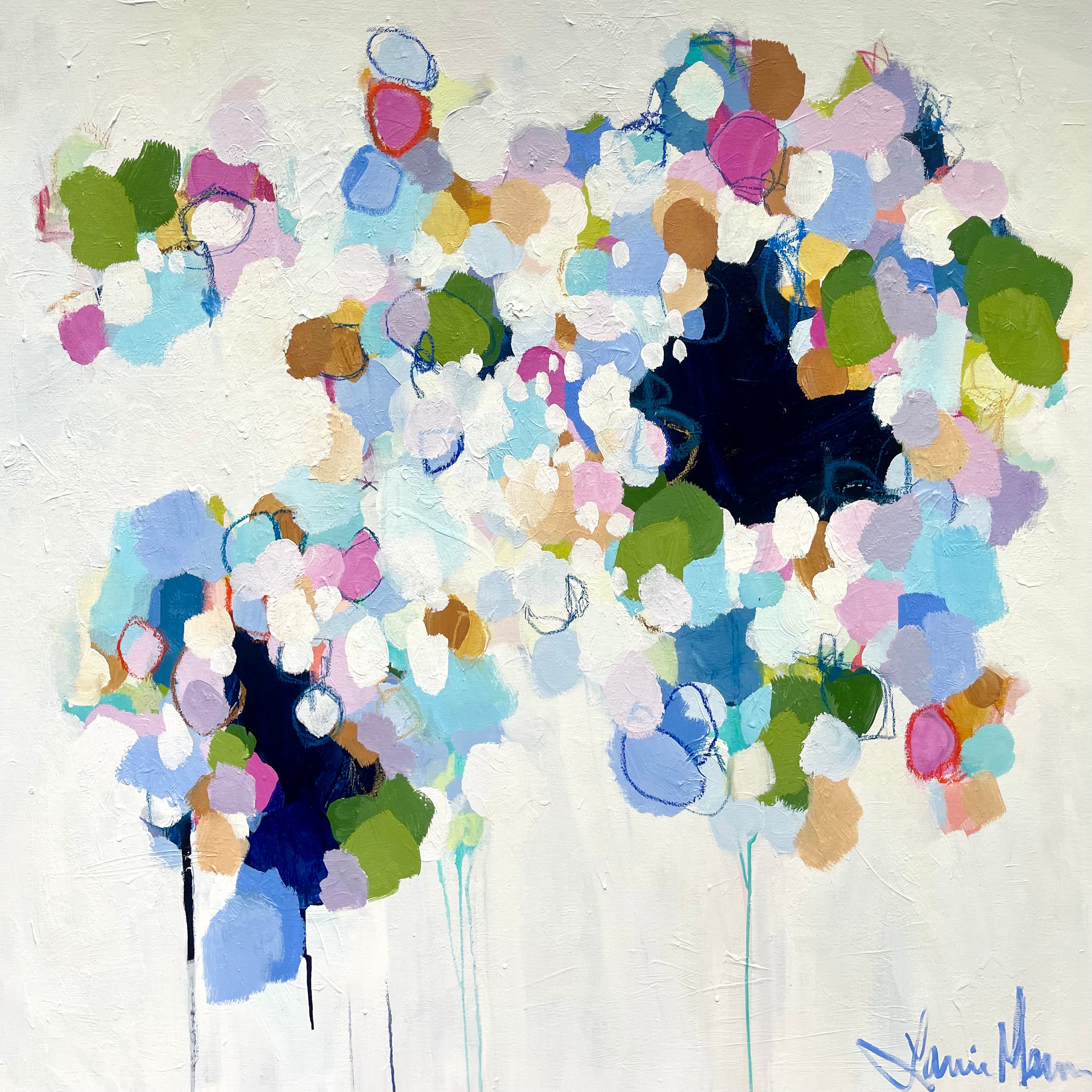 Art has been a part of my life from the very beginning. I was raised in North Carolina where my mother, an artist and art teacher, filled my childhood with projects and books and conversations about color and composition. Later, I took studio classes, studied art history and lived abroad in Florence, Italy where my passion for painting became clear. I am inspired daily by aesthetic beauty around me, which inspires my colors and compositions that are clean, fresh and balanced. My goal is for the aesthetic beauty of my art to evoke an emotional response that brings joy, lifts the spirit and reminds one of goodness and beauty within the soul. I believe one can find solace from the imperfections and messiness of life through the beauty of art. My preferred mediums are acrylic and oil pastels and I use canvases of all sizes to explore color and energy in abstract pieces, as well in my figurative pieces. Lanie has worked as a professional artist for 10 years and lives in Washington, DC with her husband, twin sons, daughter and two dogs.