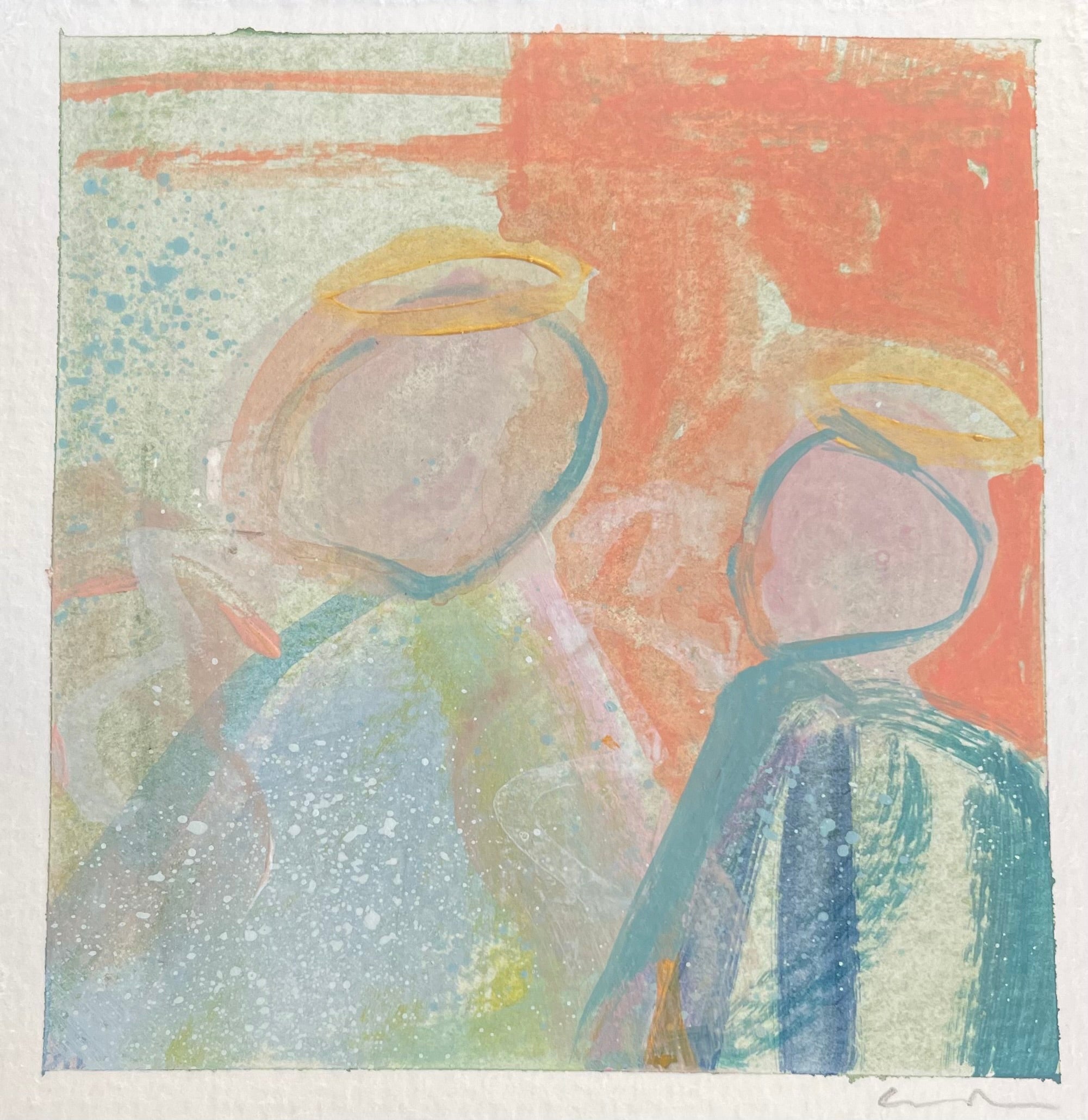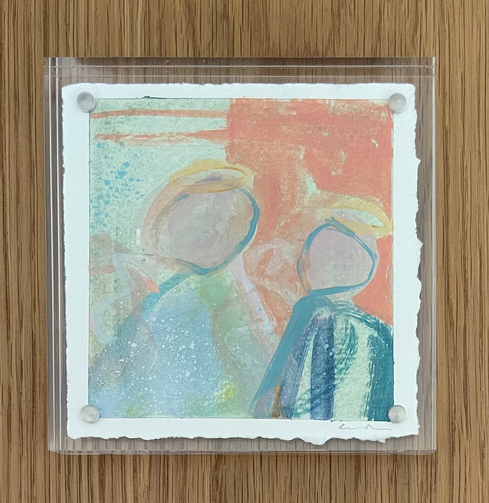mixed media and watercolor on paper, in acrylic frame